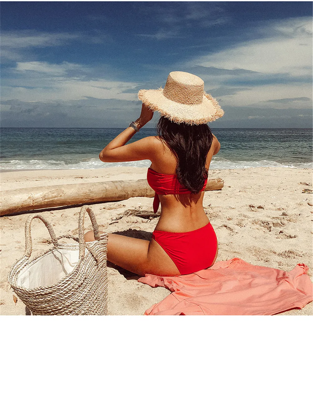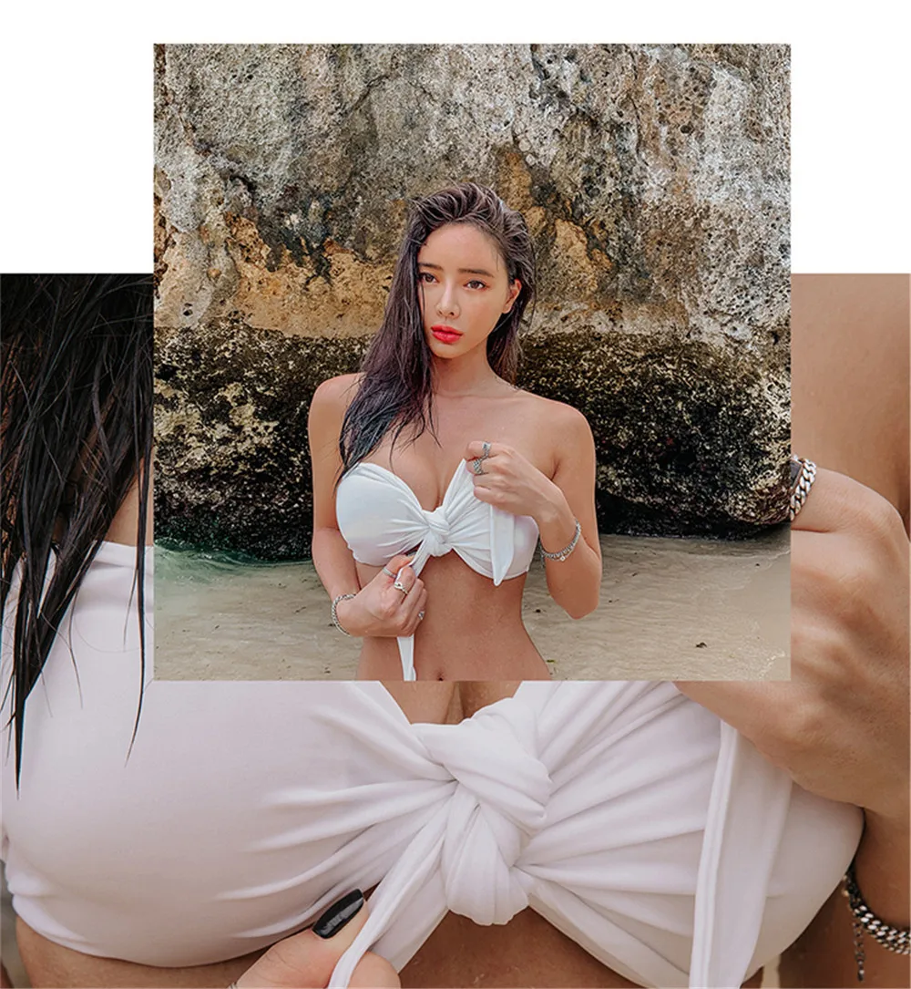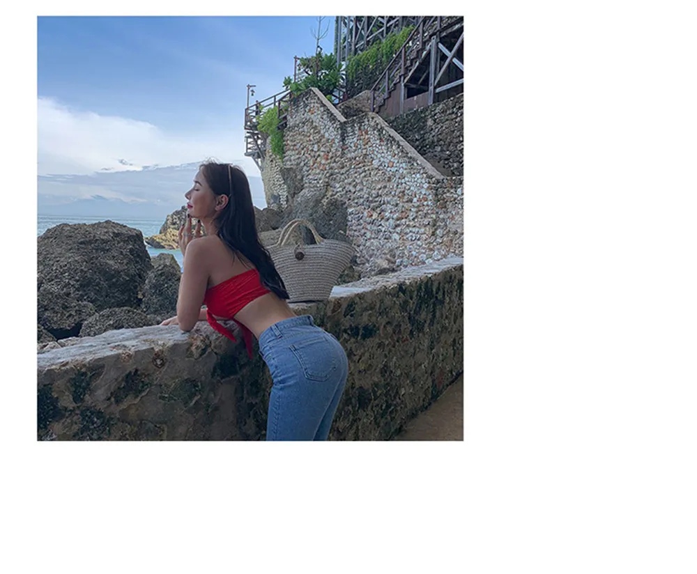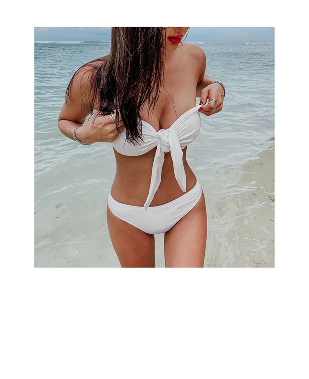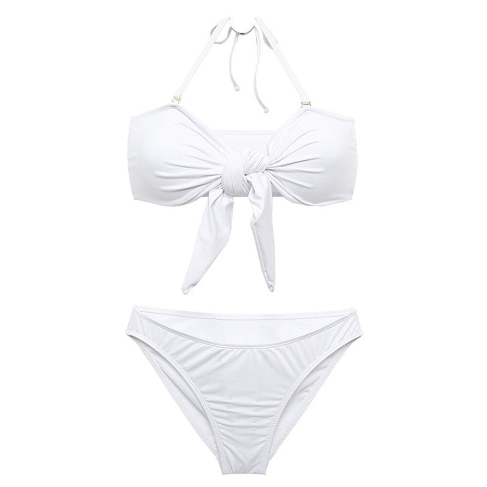Sexy Bandeau Bikini Women Solid Swimwear Bow Biquini Push Up Swimsuit Halter Bikinis Red Bathing Suit Korea Style Beachwear Pad