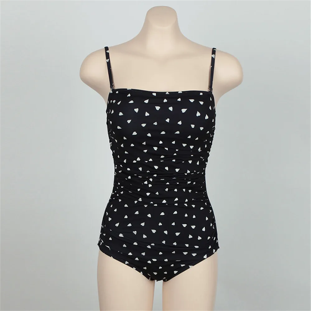 Sexy Bandeau One Piece Swimsuit Women Print Swimwear Open Back Monokini Push Up Swim Suit Korea Style Bathing Suit Pads Pleated