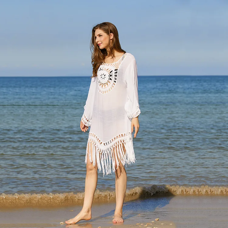 Sexy Cover Up Bikini 2021 Women Swimsuit Coverup Bathing Suit For The Beach Wear Knitting Swimwear Mesh Beachwear Dress