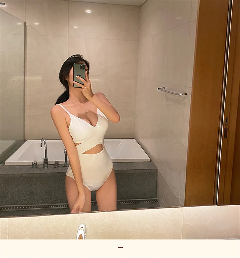 Sexy Cut Out One Piece Swimsuit Women Solid Swimwear Push Up Monokini Wrap Swim Suit Open Back Trikini Pad Bathing Suit White