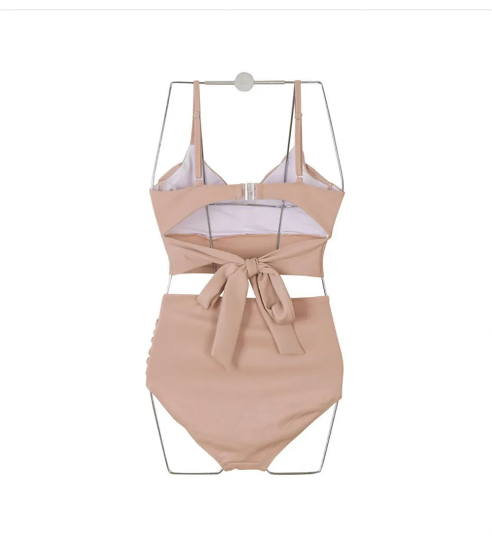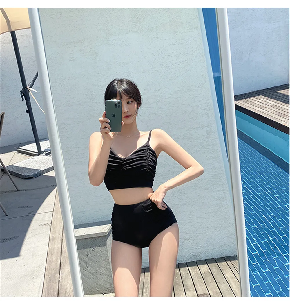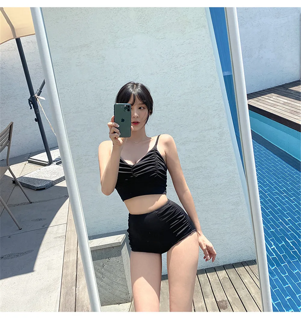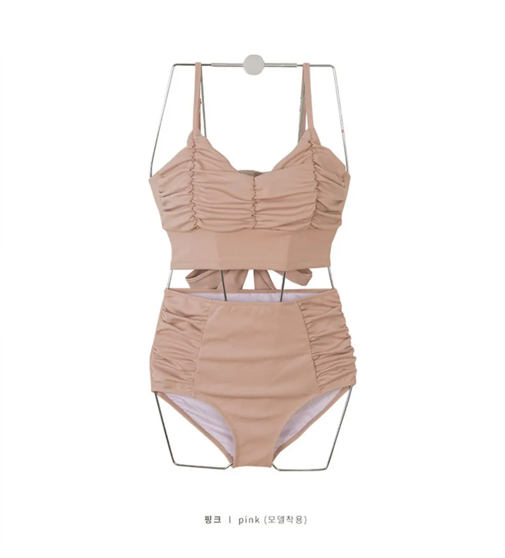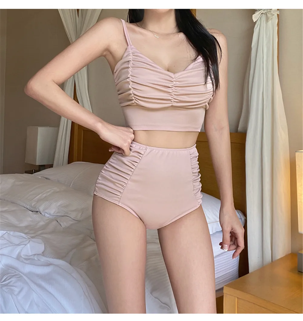 Sexy High Waist Bikini Women Solid Swimwear Pleated Biquini Crop Top Swimsuit Push Up Bikinis Pad Bathing Suit Korea Style Pink
