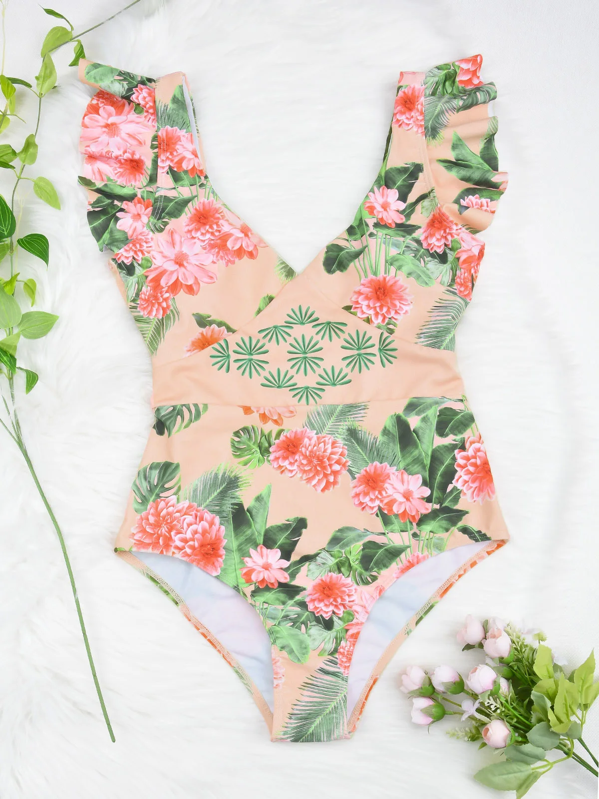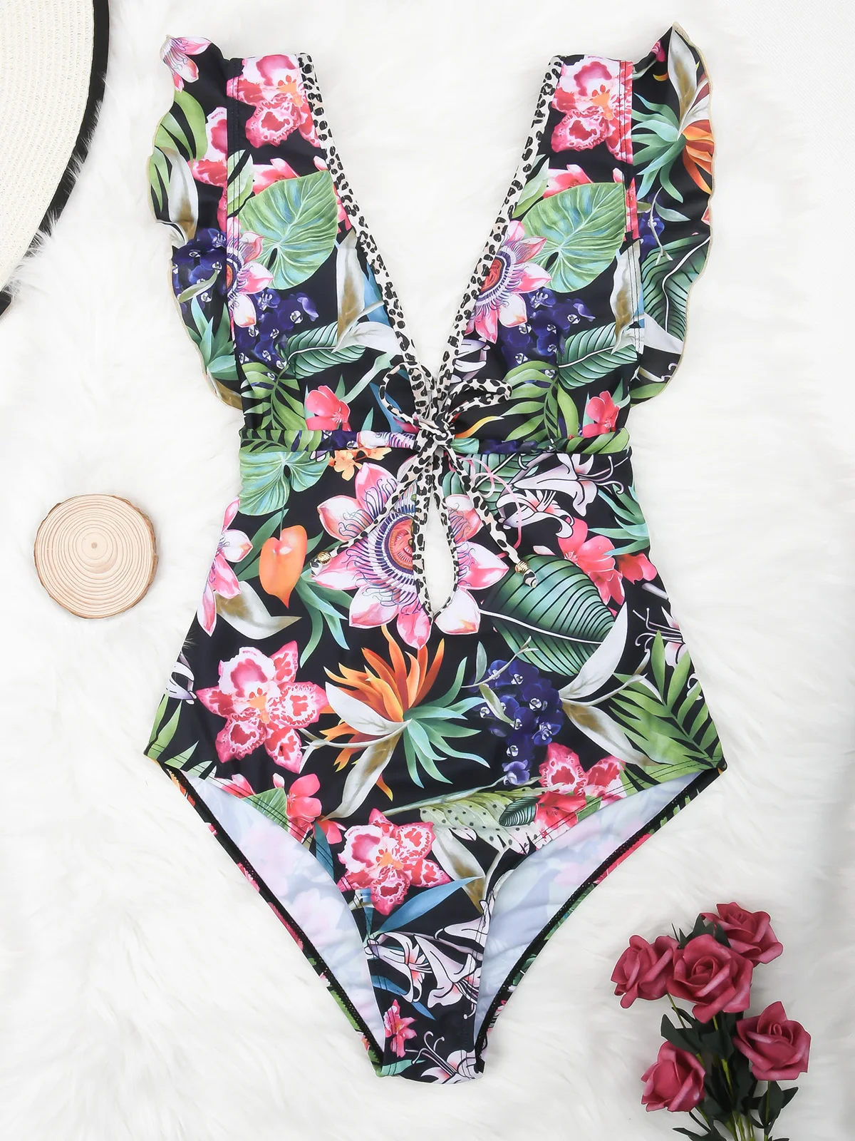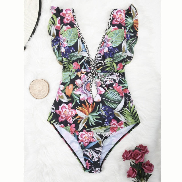 Sexy Women One Piece Swimsuit Female Push Up Swimwear Floral Bathing Suit Ruffle Swimming Suit Bodysuit Monokini Swimsuits