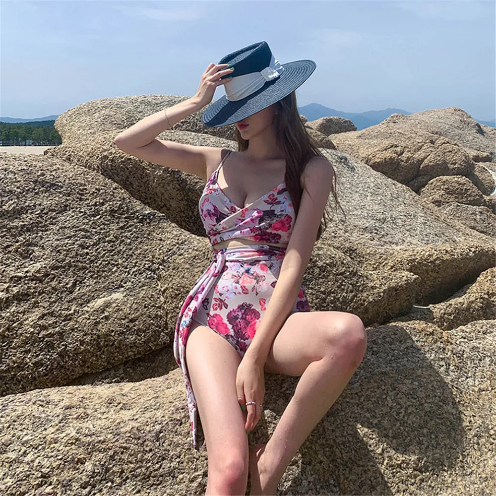 Sexy Wrap One Piece Swimsuit Women Print Swimwear Open Back Monokini Push Up Swim Suit Belt Bathing Suit Pads Korea Cut Out