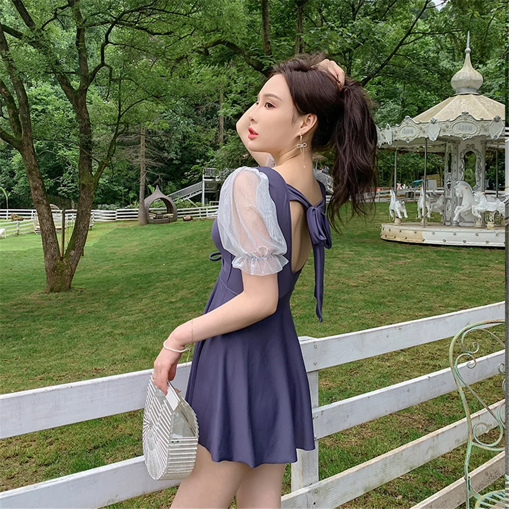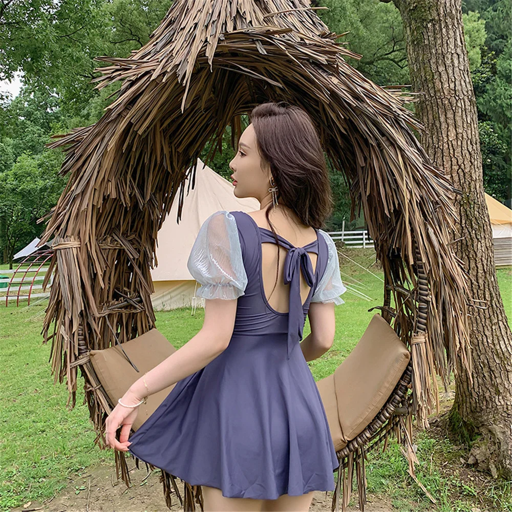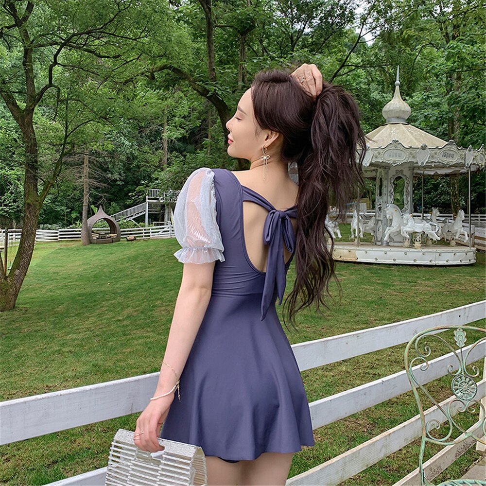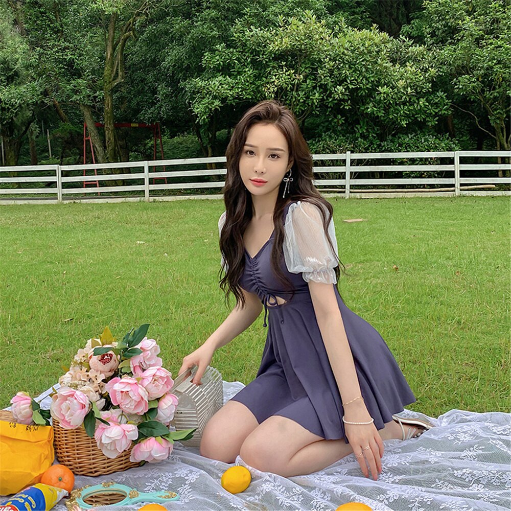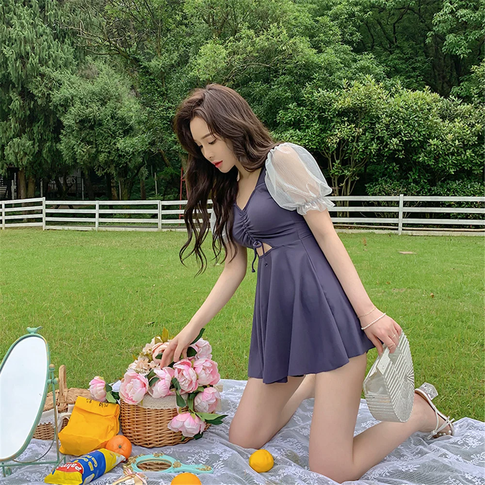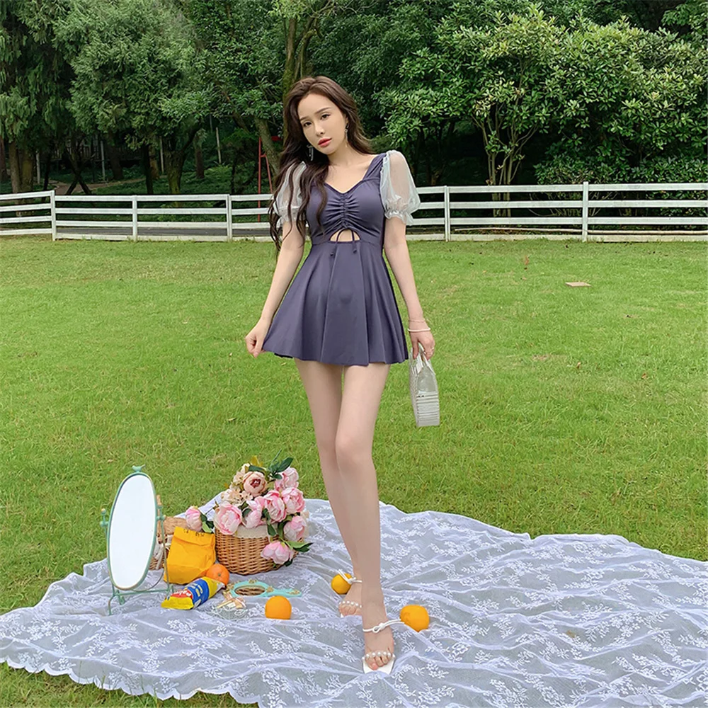 Short Sleeve One Piece Swimsuit Women Solid Swimwear Skirt Bathing Suit Cut Out Monokini Ruffle Flounce Monokini Push Up Pad