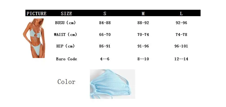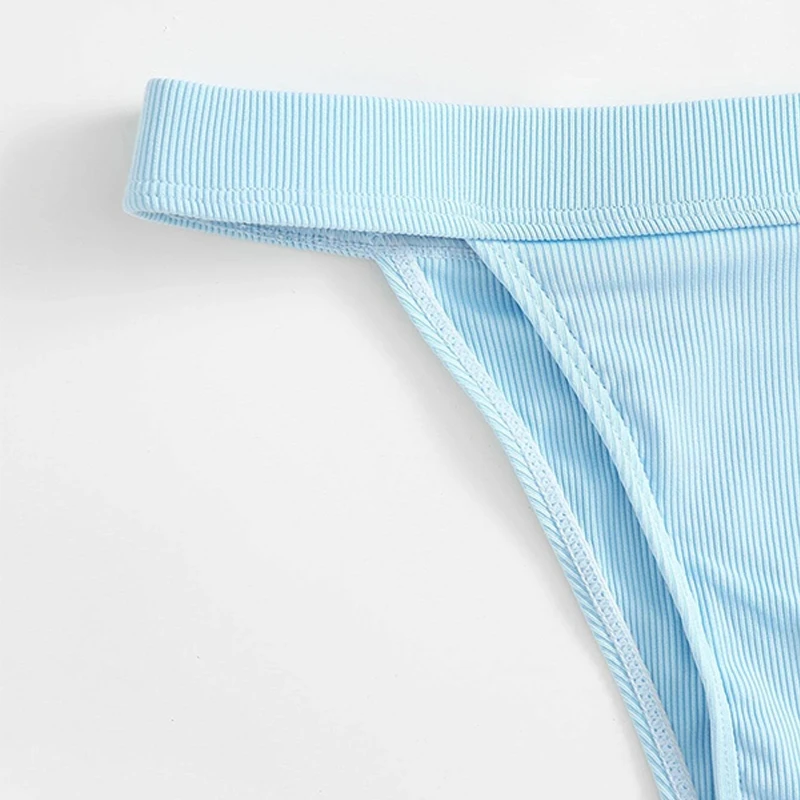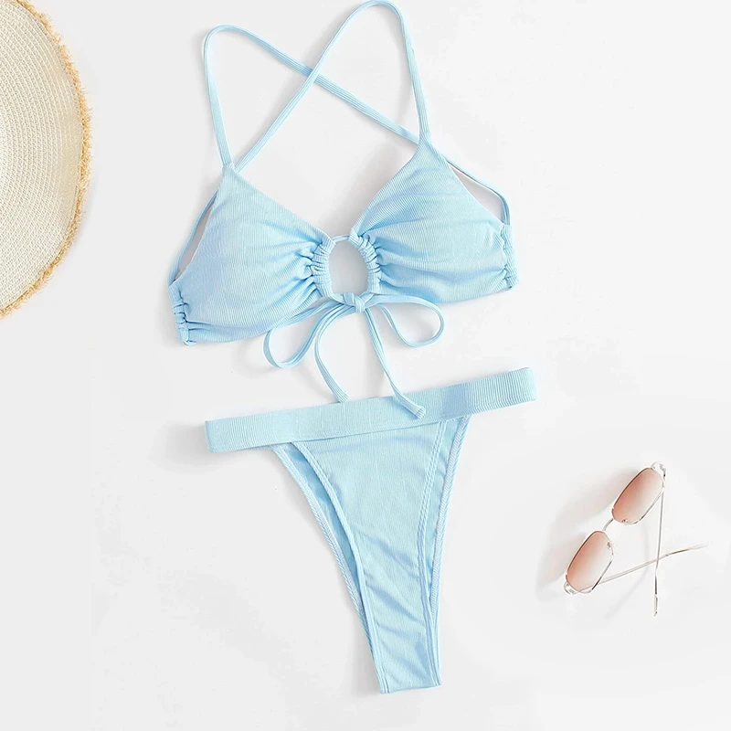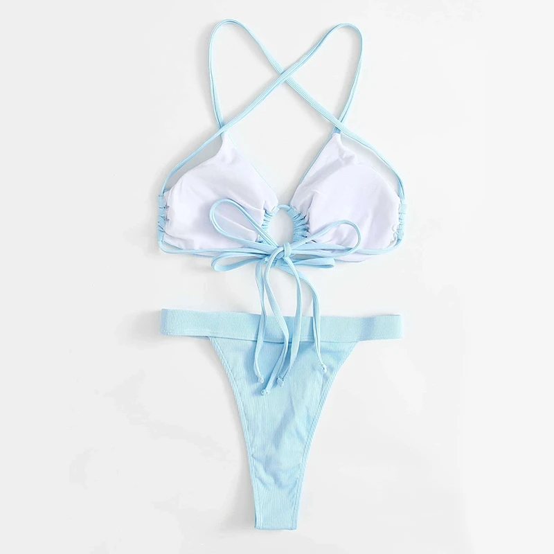 Women's Swimwear High Waist Bikini Blue Swimsuit Separate Beachwear String Sexy Solid Color Pattern