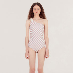 • Sexy One Piece Swimsuit Women Plaid Swimwear Open Back Monokini Mesh Shoulder Bathing Suit Removable Pad Beach Wear