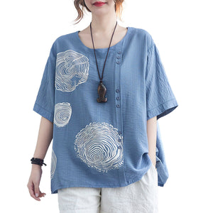 Oversize T-shirt Women Sumemr Vintage Loose Shirt Tops Button Printed Tees Boho Holiday Casual Cotton Linen футболка Femme Tops