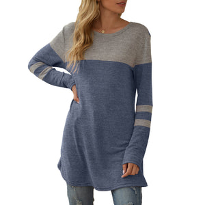 Spring Autumn Women T-Shirts New Fashion Splicing O-Neck Long Sleeves Soft Tees Loose Fit Casual ChicTops Femme Sweatshirt