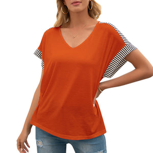 Tshirt Women Fashion Striped Splicing Loose T-shirt Femme Sexy V Neck Dropped Shoulder Short Sleeve Summer Tees Casual Tops