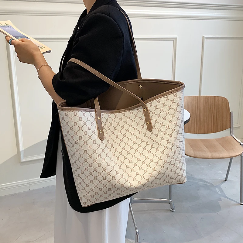 2 Pçs/set Luxo Designer De Alta Capacidade Sacola Bolsa para As Mulheres As Tendências Da Marca Designer Listrado Ombro Sho