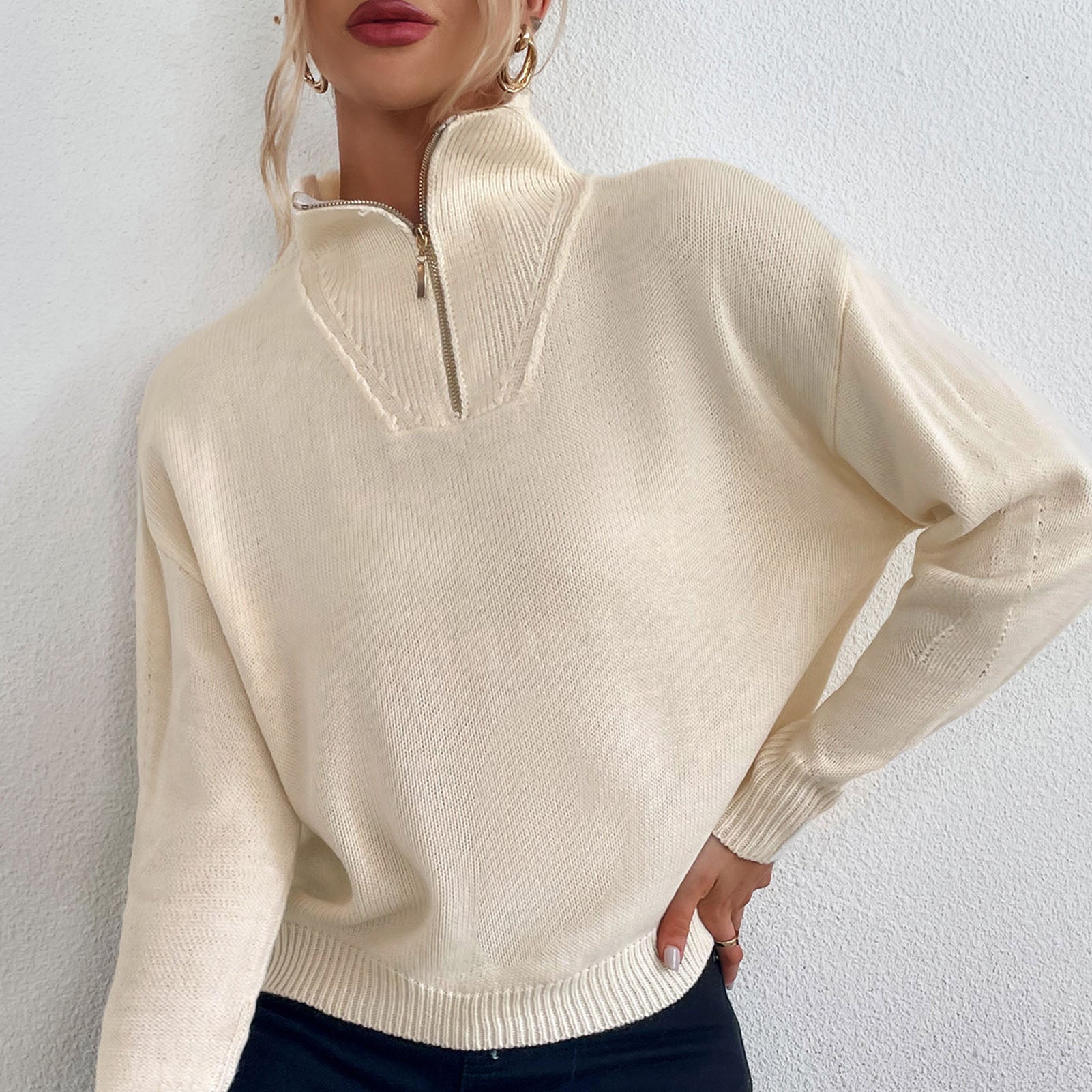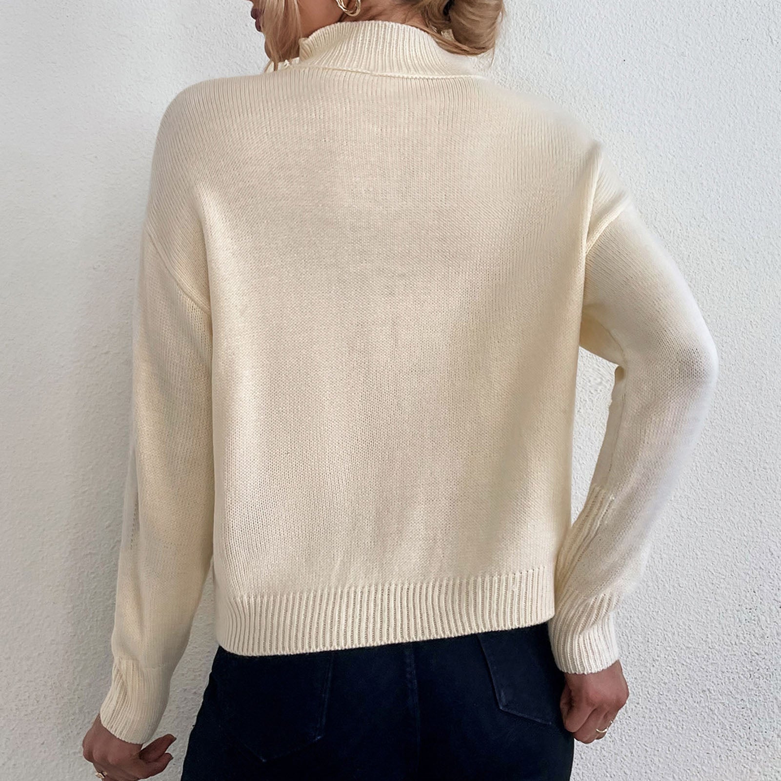 Knitted sweater in solid color features half collar, long sleeves and zipper details. It is of casual style and easy go with jeans. Have one for this winter!