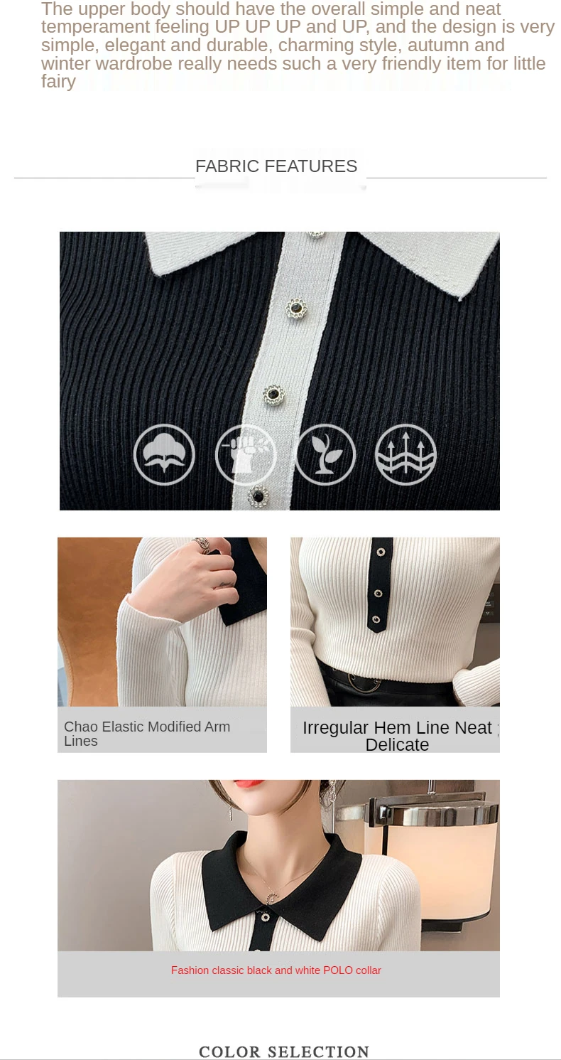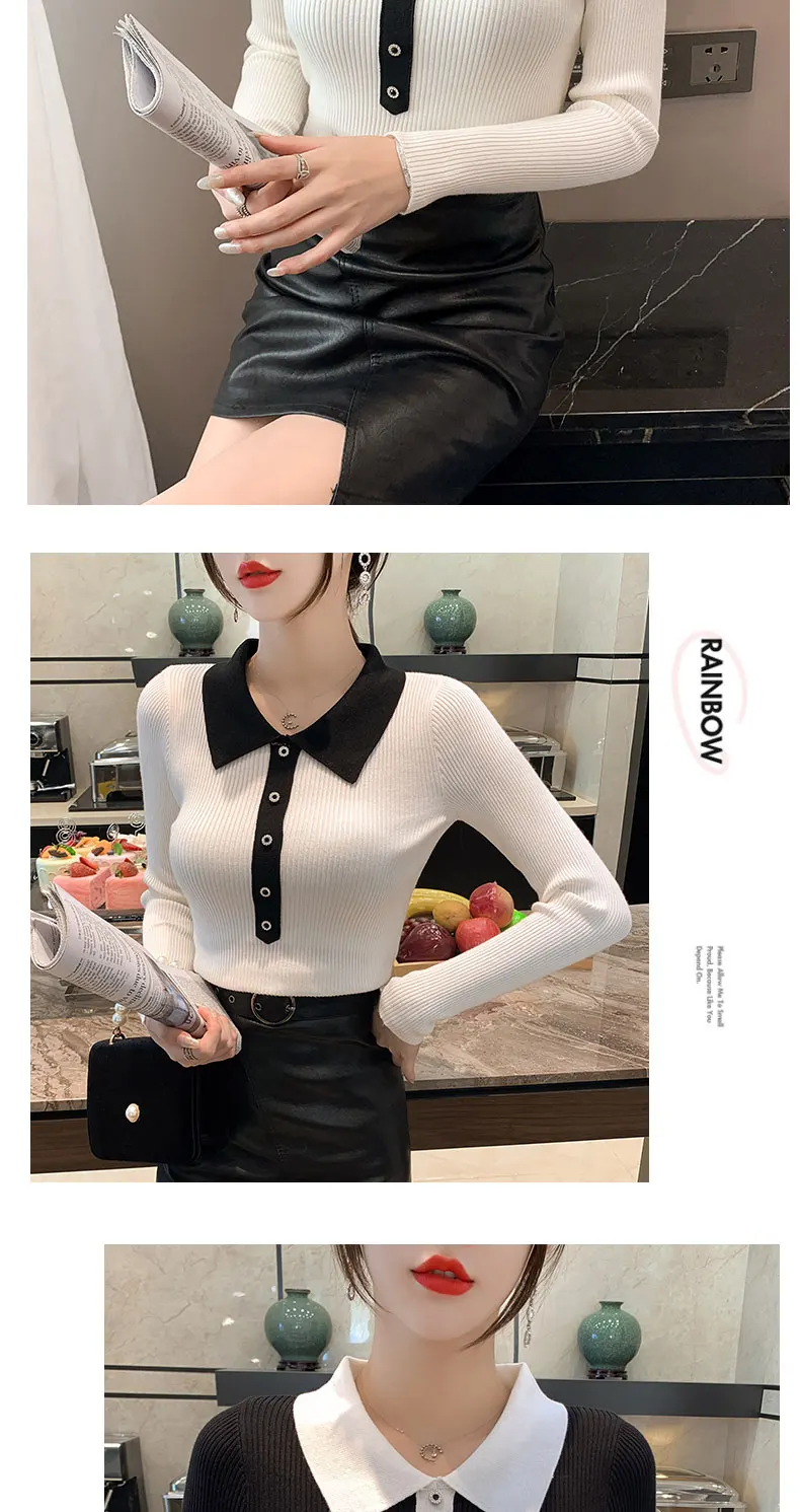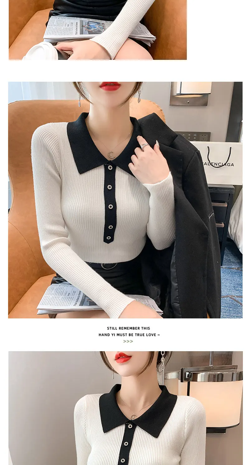 2021 Autumn/winter New Style POLO Collar Long-sleeved Sweater Women's Self-cultivation Western Style Bottoming Shirt