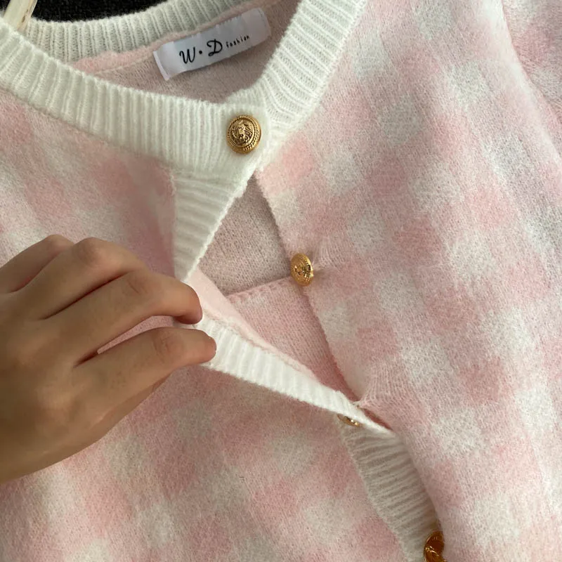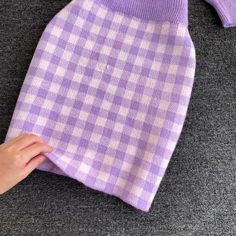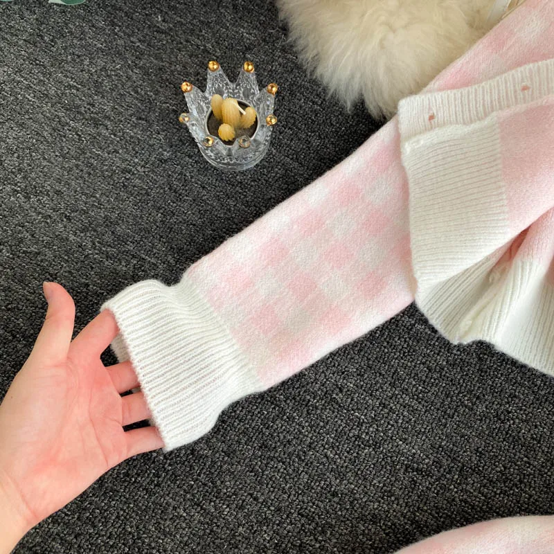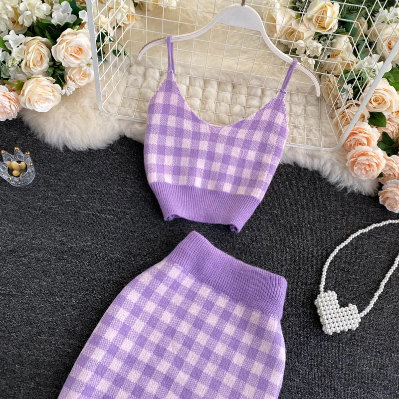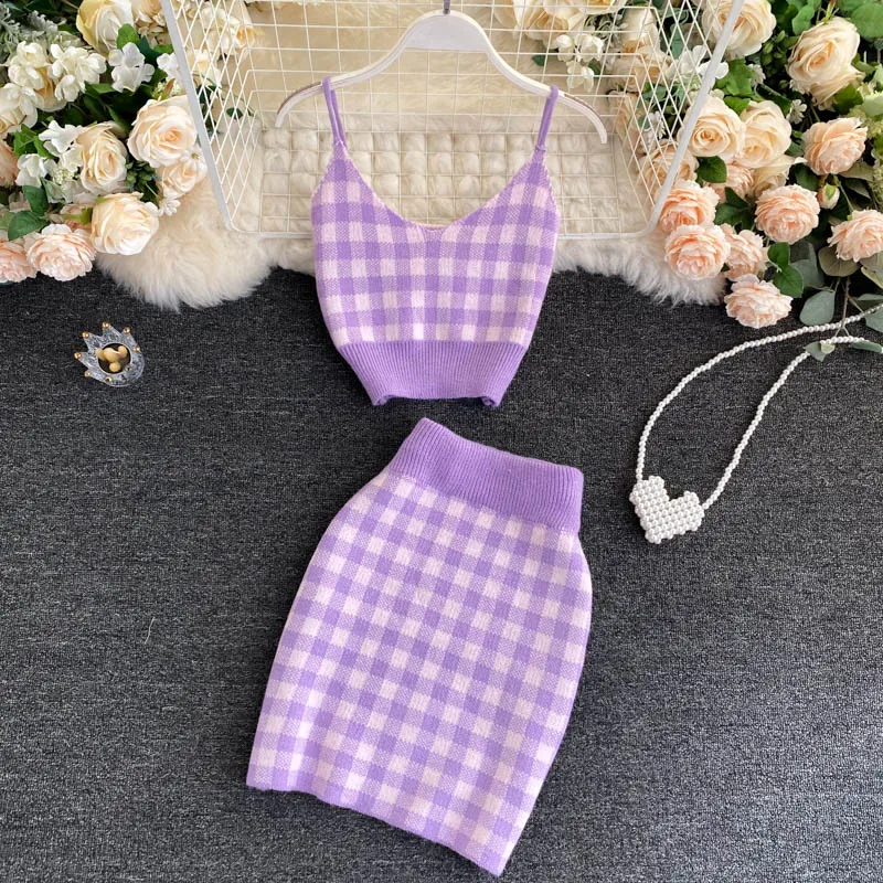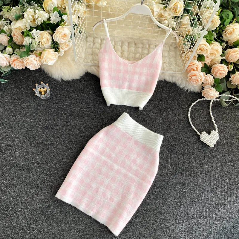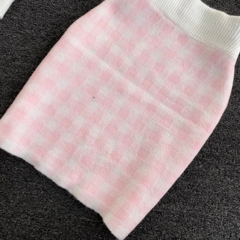 2021 Fashion Women Clothing Suit Long Sleeve Knit Cardigans+V-neck Crop Top Vest+Bodycon Skirt 3 Piece Set Casual Plaid Sweater