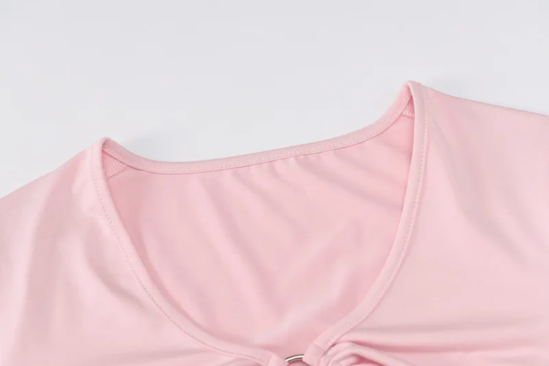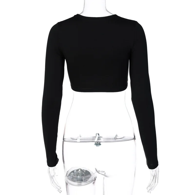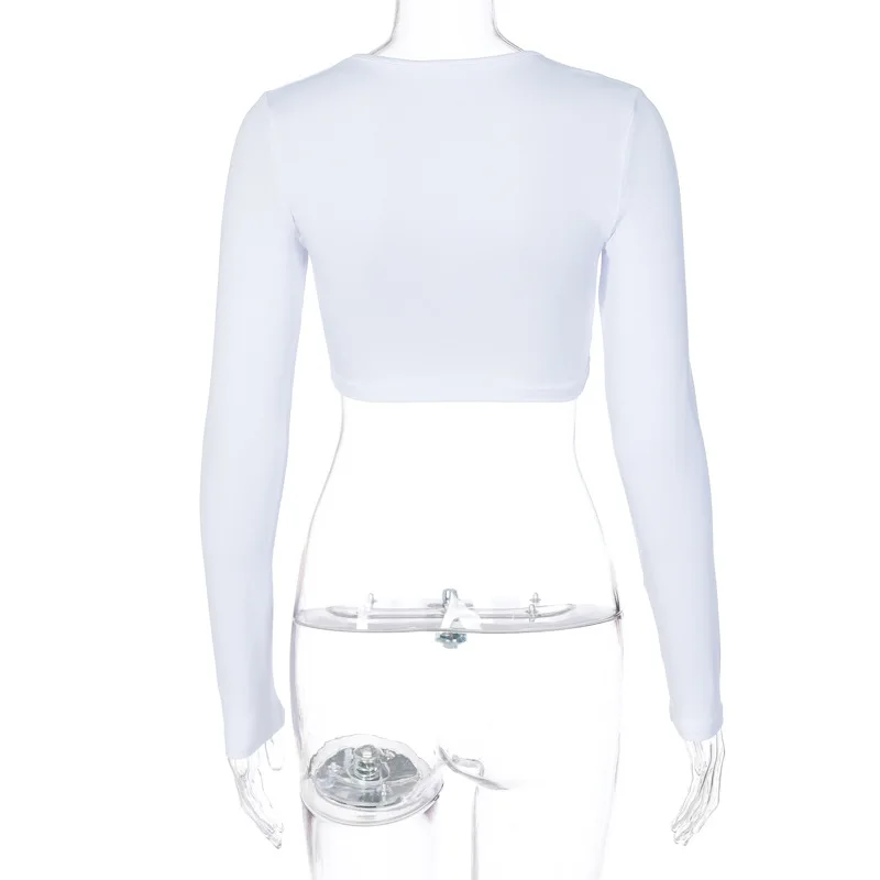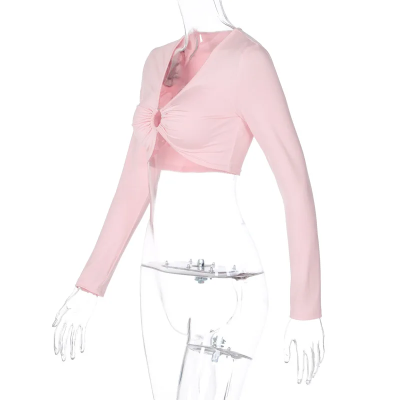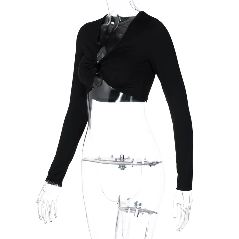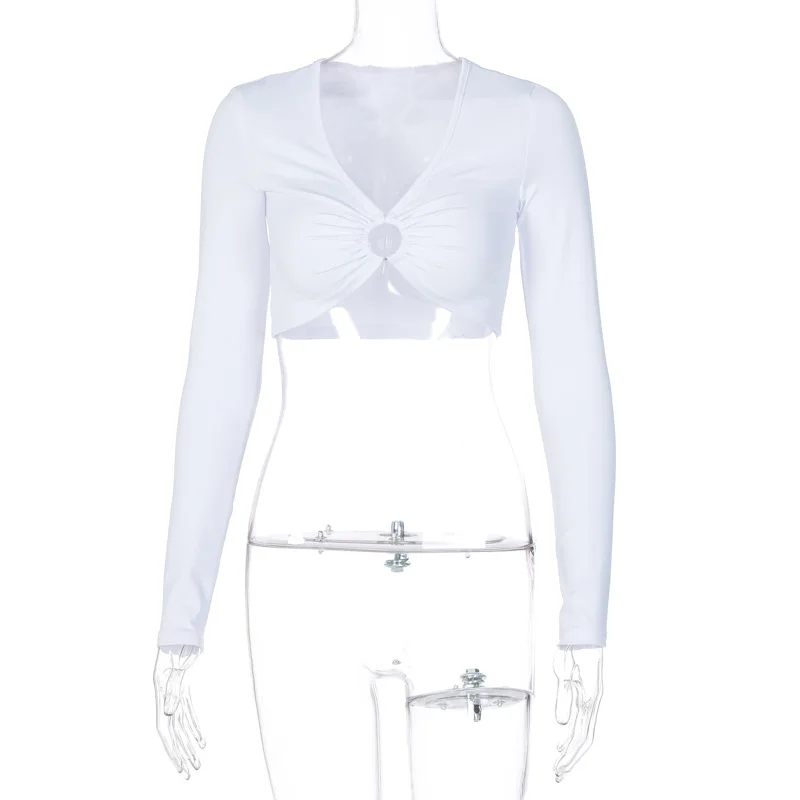 2021 Fashion Women’s Summer Long-sleeved Crop Top Solid Color Hollow Ring Exposed Navel T-shirt Skinny Sexy Ladies New Tees