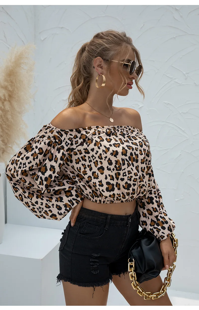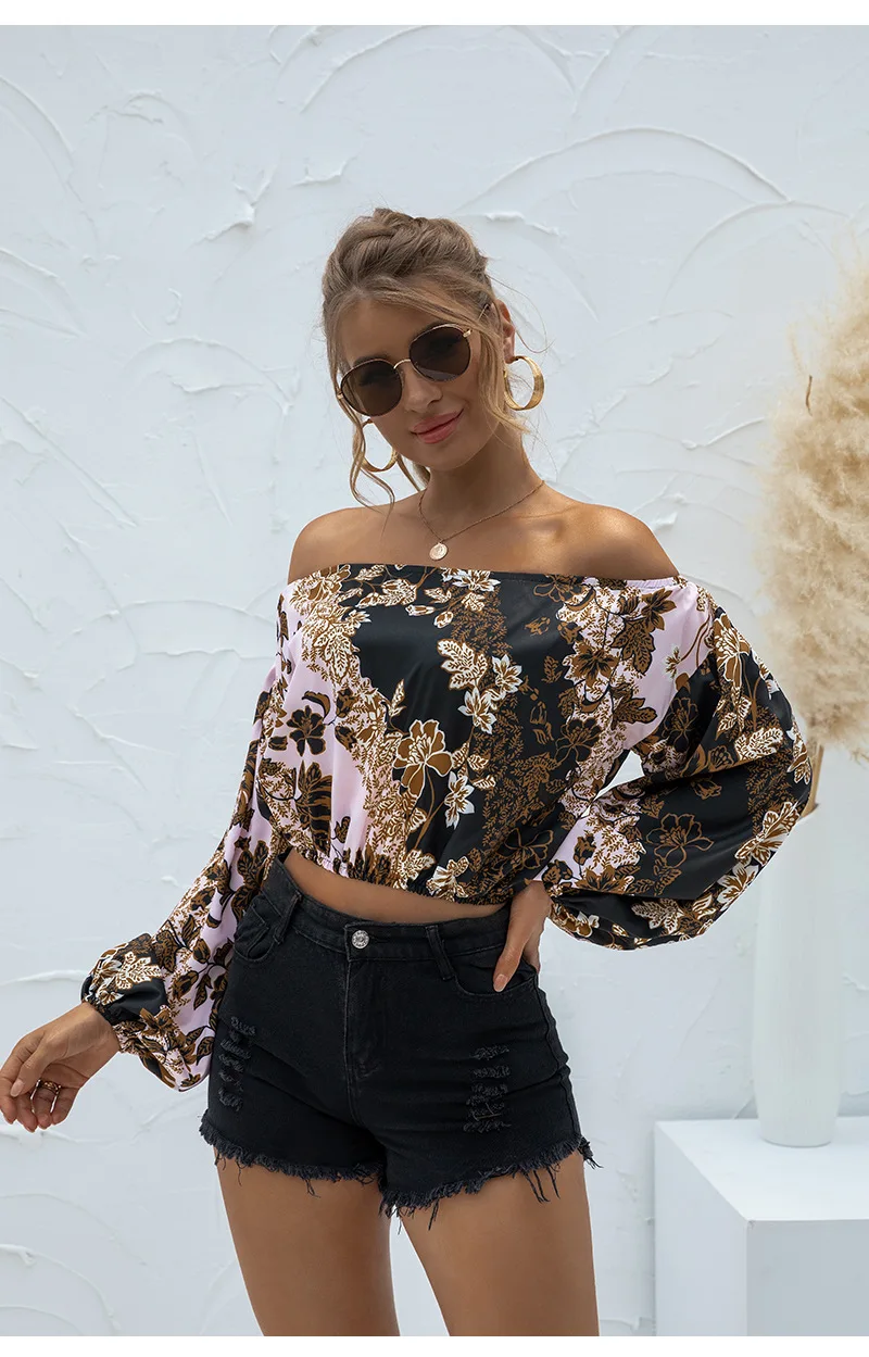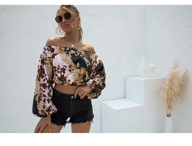 2021 Floral Women Blouse Summer Crop Tops Spring Slash Collar Print Shirts Sexy Off Shoulder Puff Long Sleeve Blouses Blusas