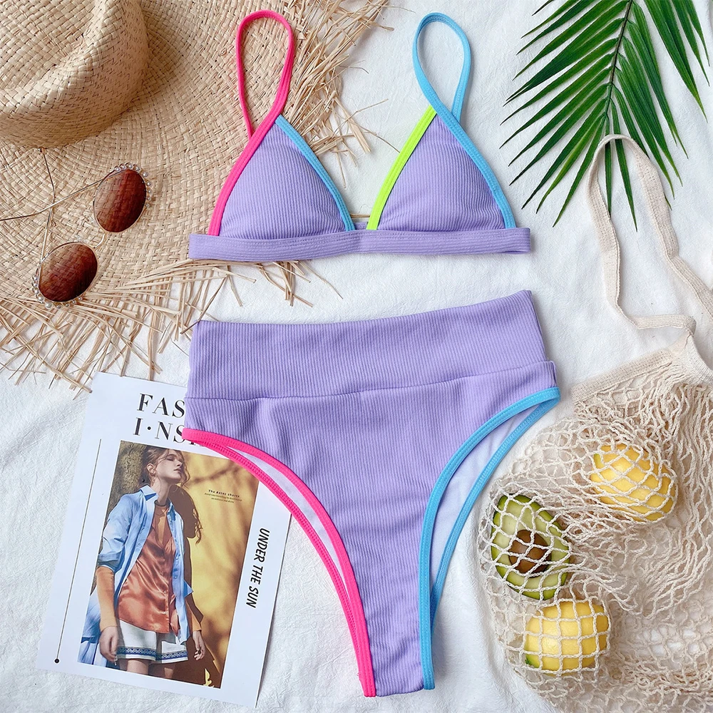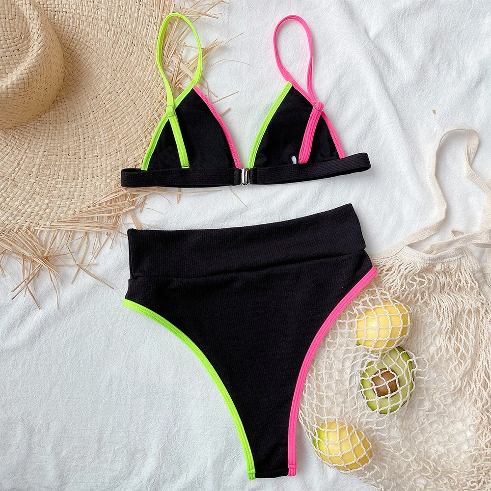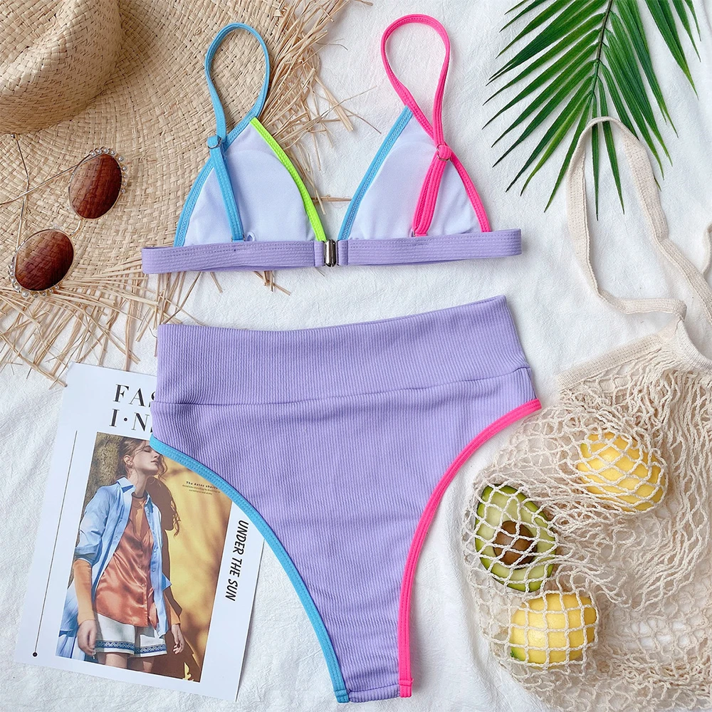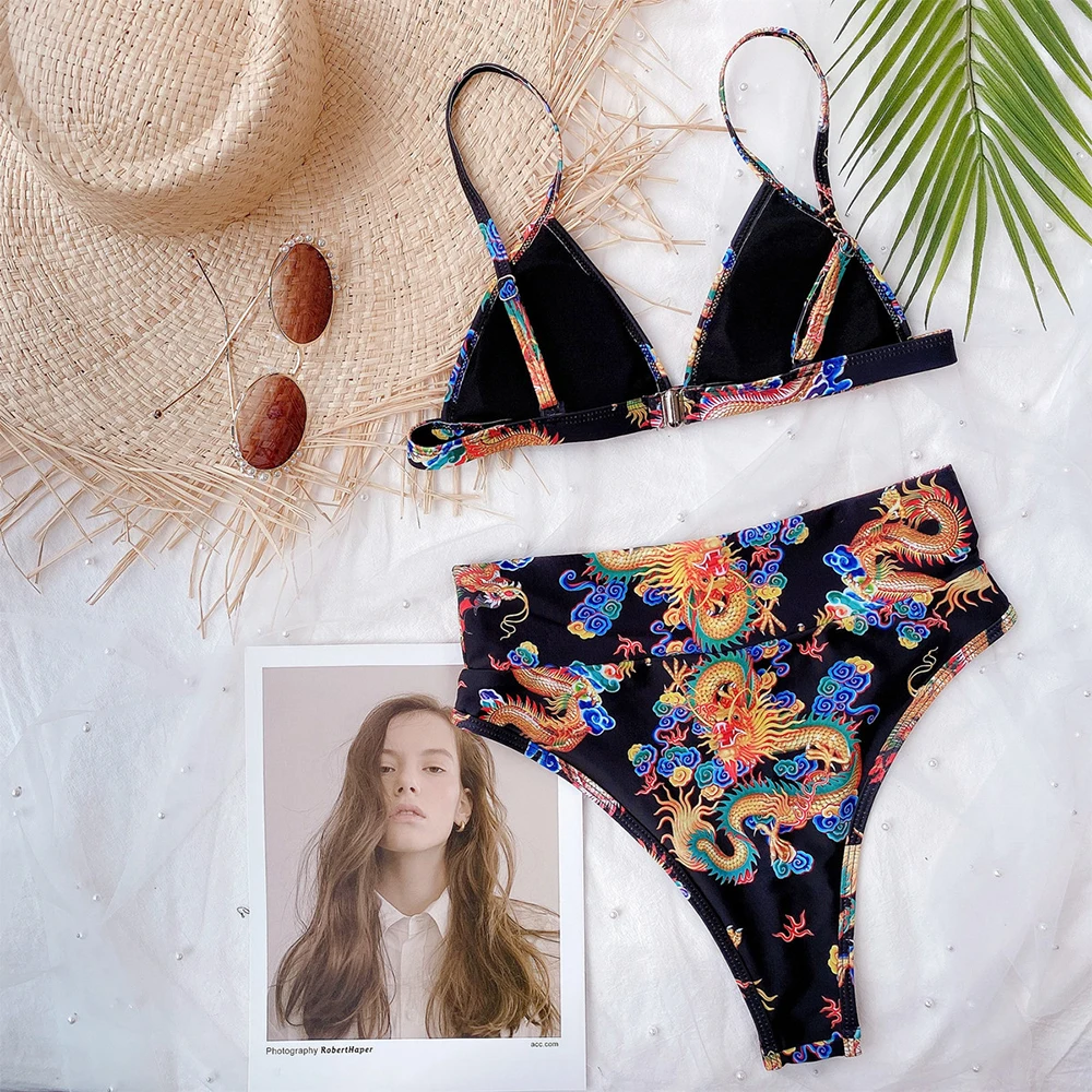 2021 High Waist Patchwork Bikini Set V-Neck Swimwear Push Up Swimsuit Female Print Bathing Suits Summer Beach Wear Swimming Suit