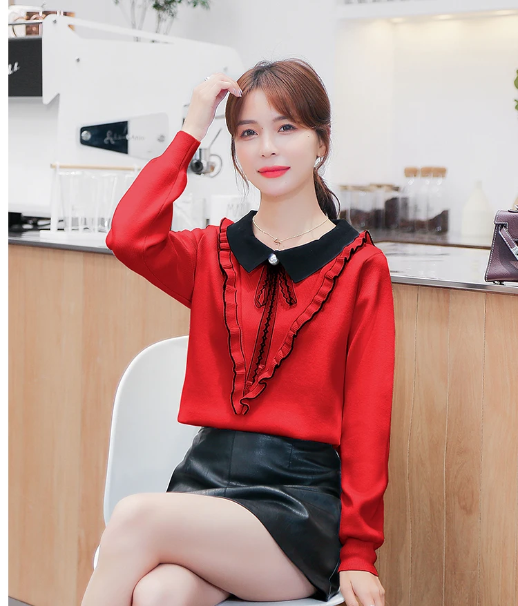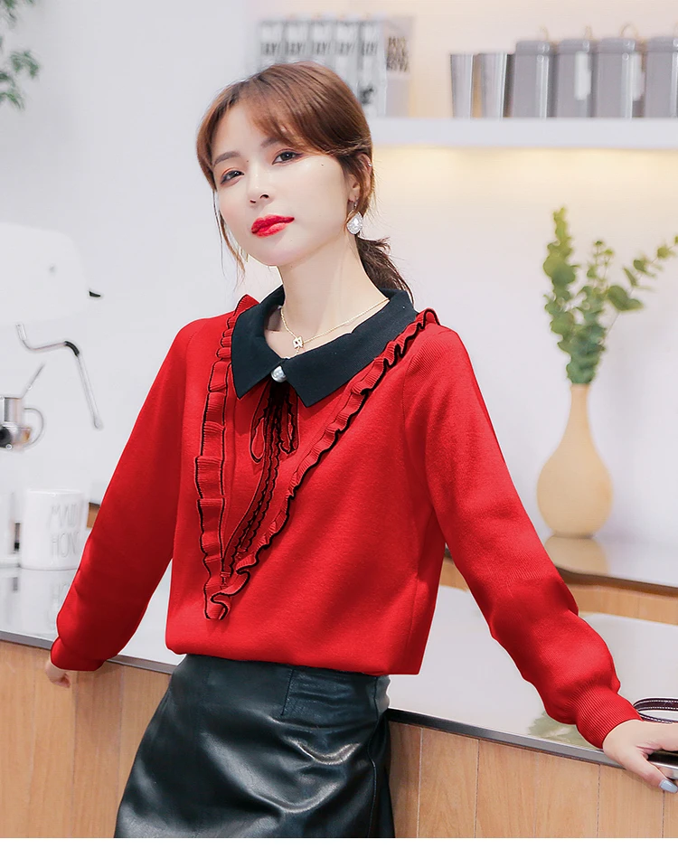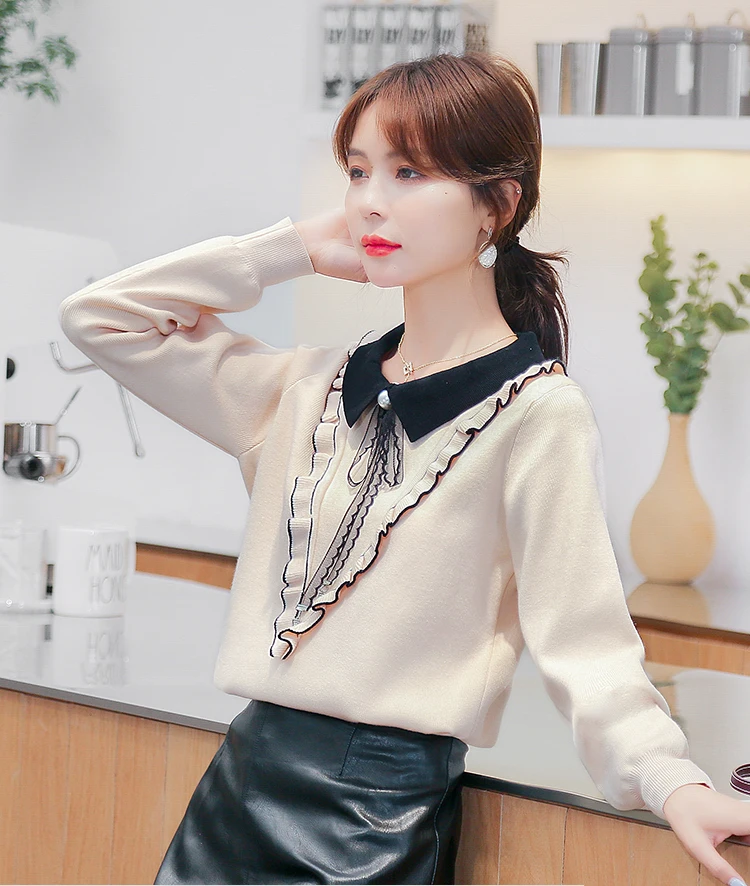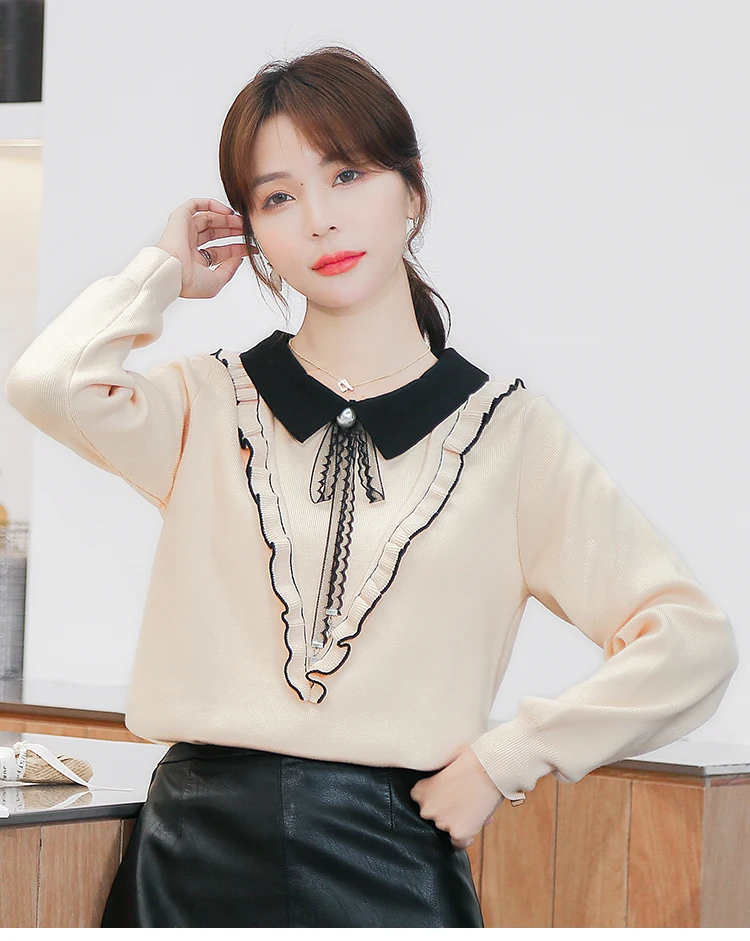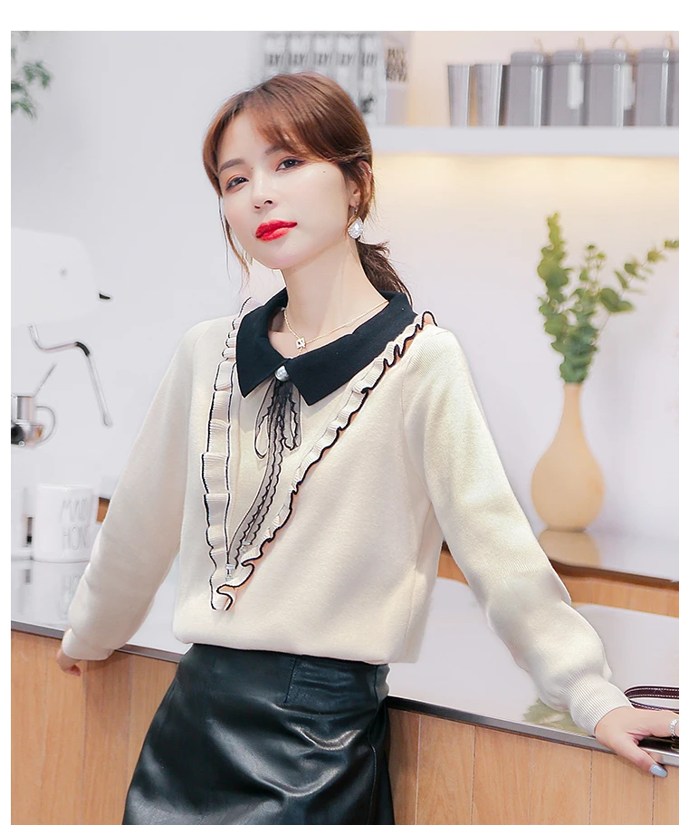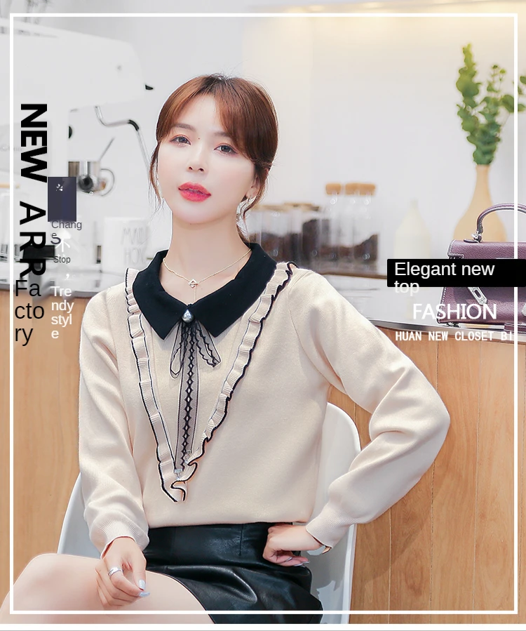 2021 New Autumn and Winter All-match Women's Sweater Loose Outer Knit Bottoming Shirt Western Style Blouse