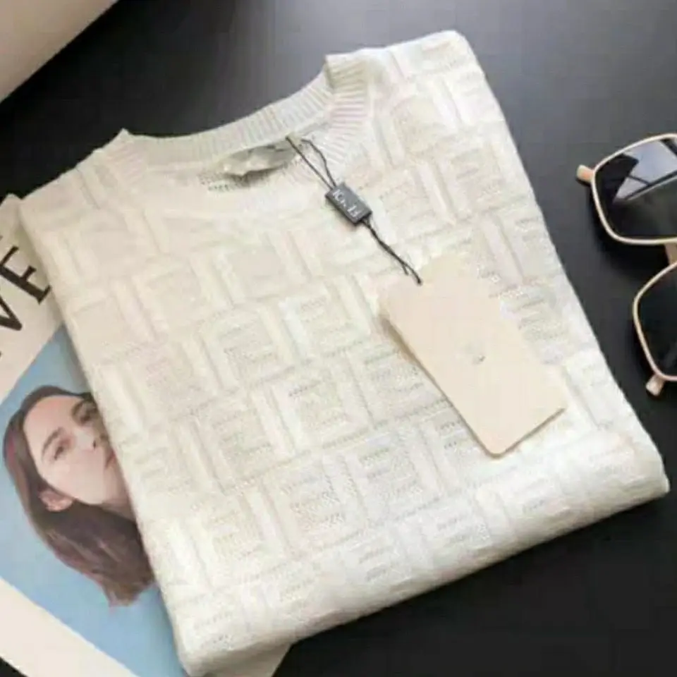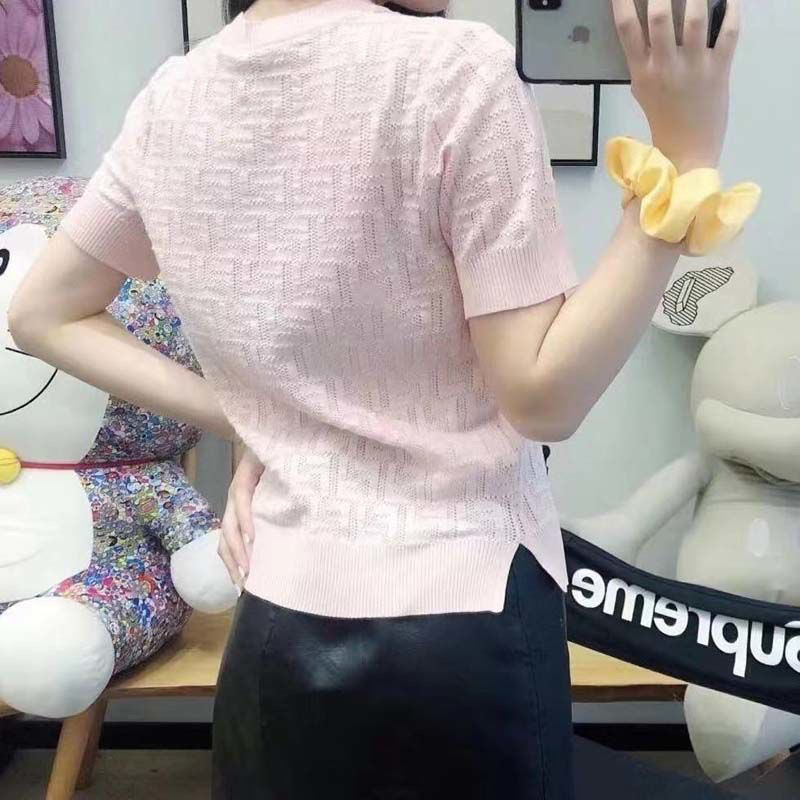 2021 New Base Shirt Hollow Letter Round Neck Ice Silk Knitting Temperament Thin Top
