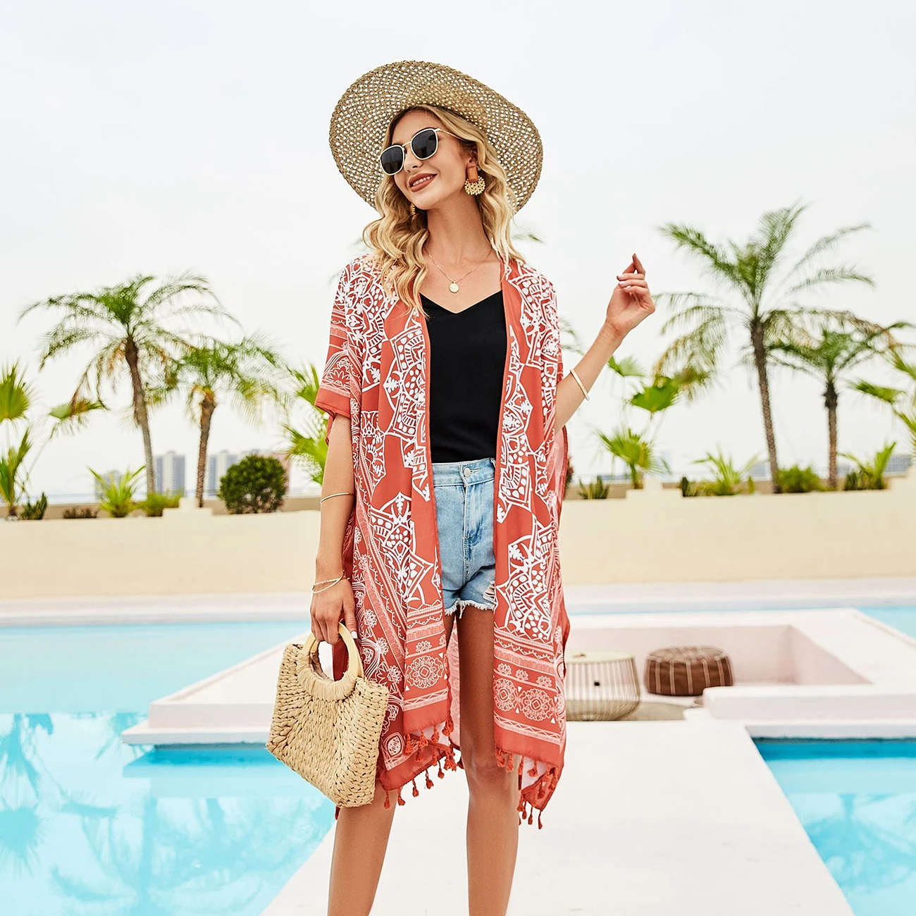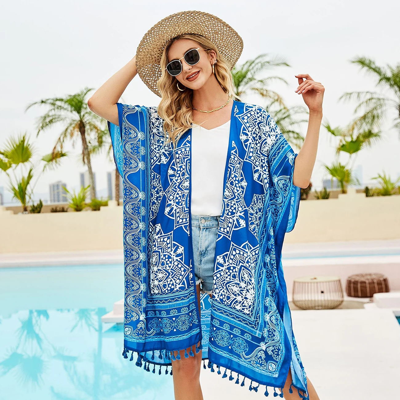 2021 New Bohemian Summer Mid-Length Chiffon Beach Top Floral Pattern Sunscreen Clothing