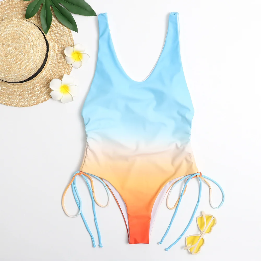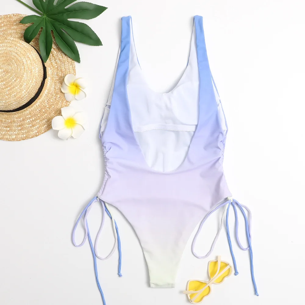 2021 New Sexy One Piece Swimsuit Women Gradient Color Swimwear Bodysuit Push Up Monokini Backless Bathing Suit Summer Beach Wear