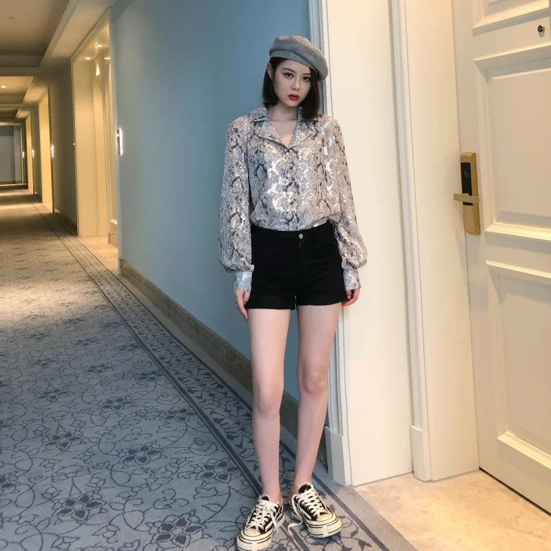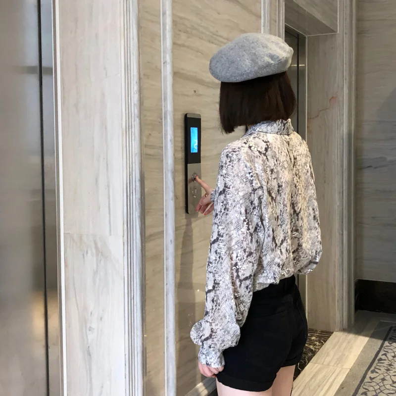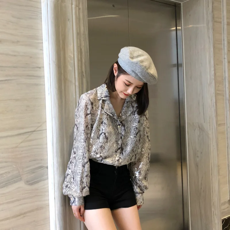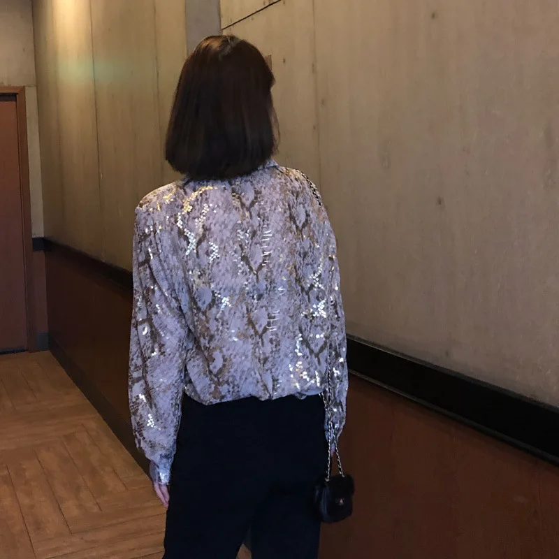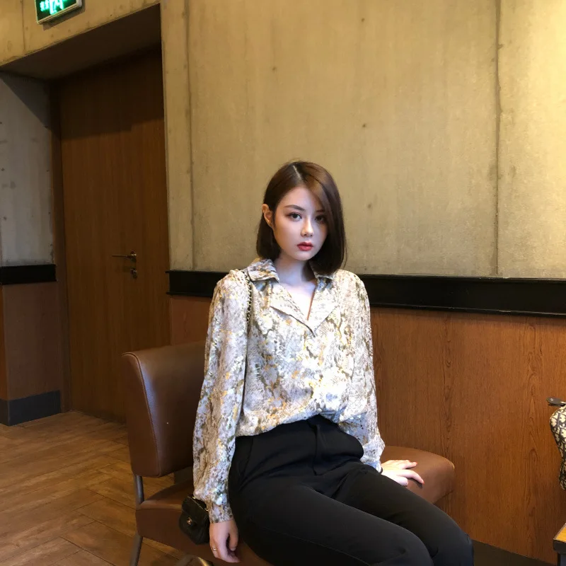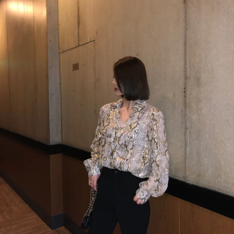 2021 New Snakeskin bronzing chiffon print shirt women spring and summer foreign style fashion loose design niche shirt