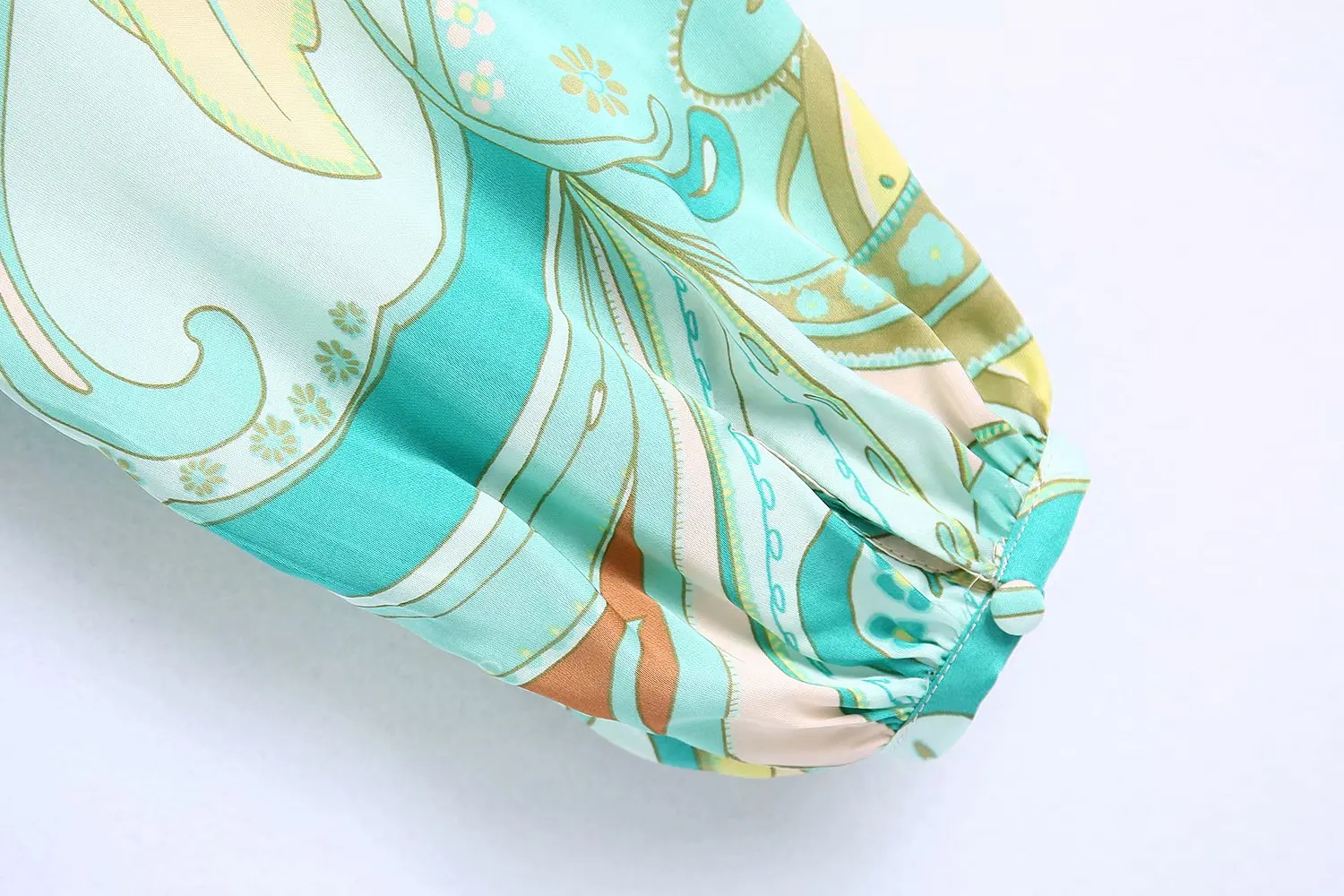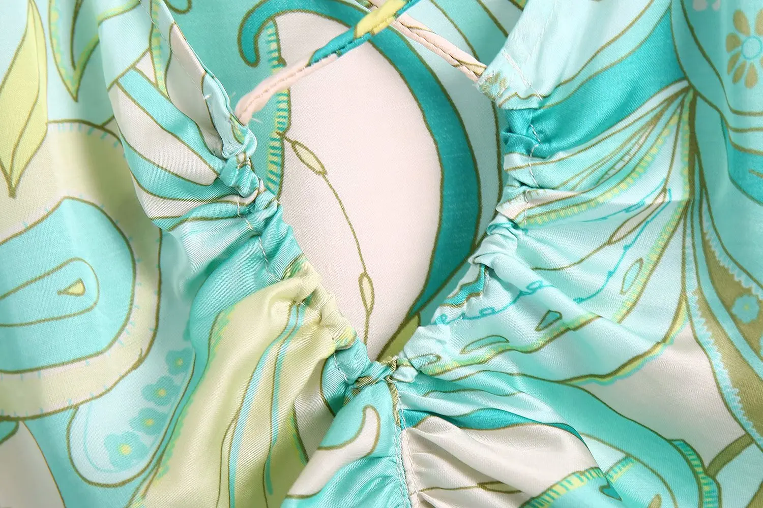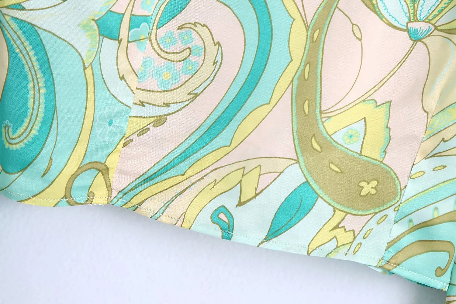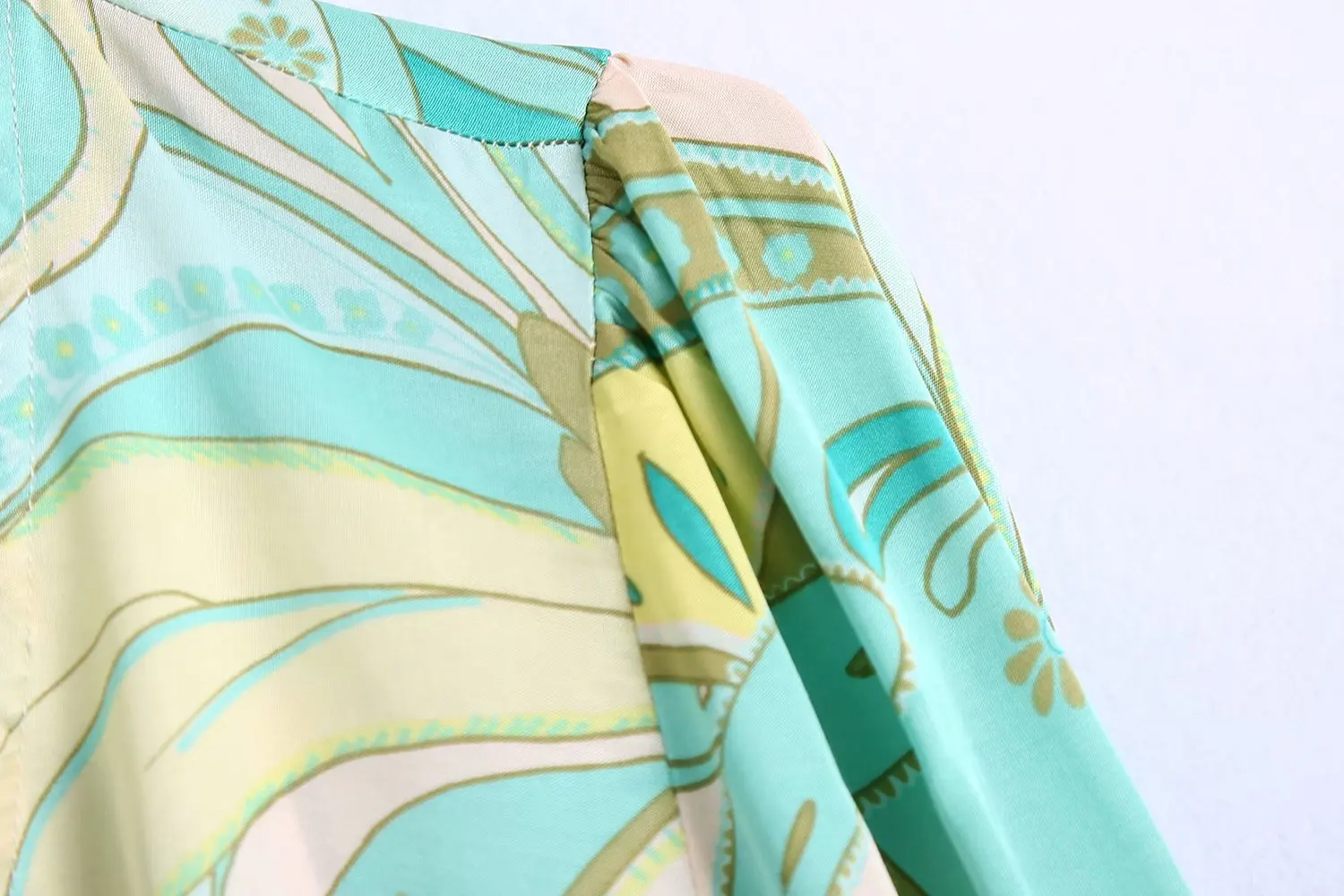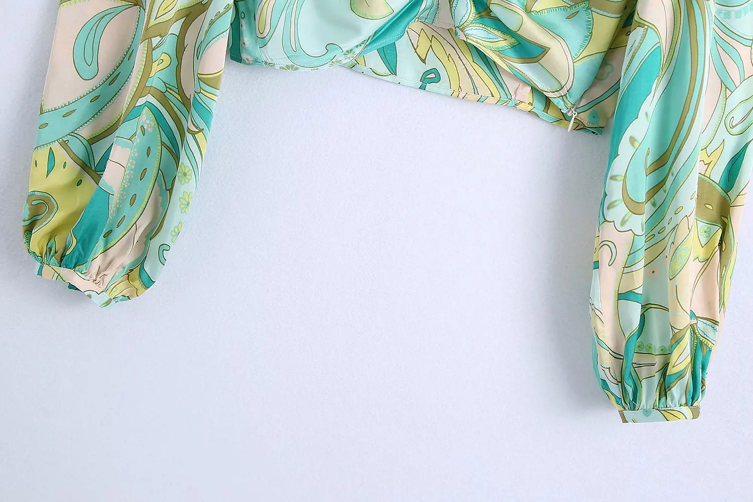 2021 New spring summer women dress Bohemian floral print cropped hollow design sexy navel short top long sleeve chiffon shirt