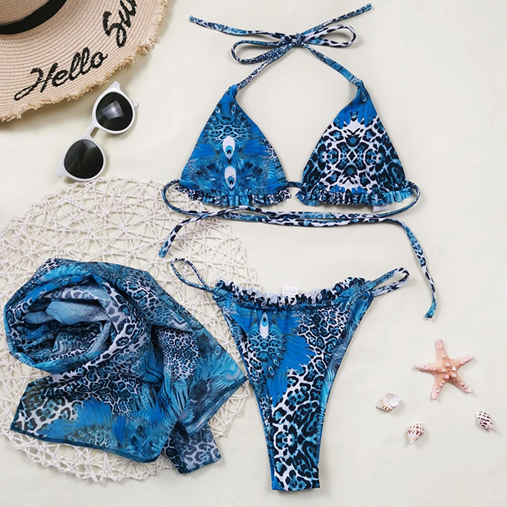 2021 Sexy Three Pieces Bikini Set Women Leopard Print Swimwear Female Swimsuit Brazilian Bikini Bathing Suits Summer Beach Wear