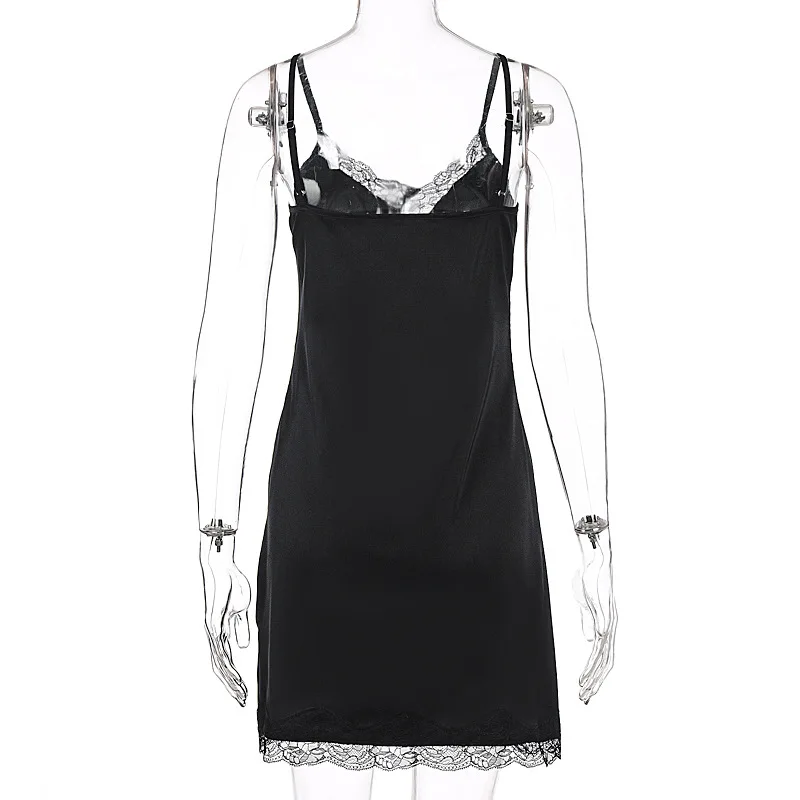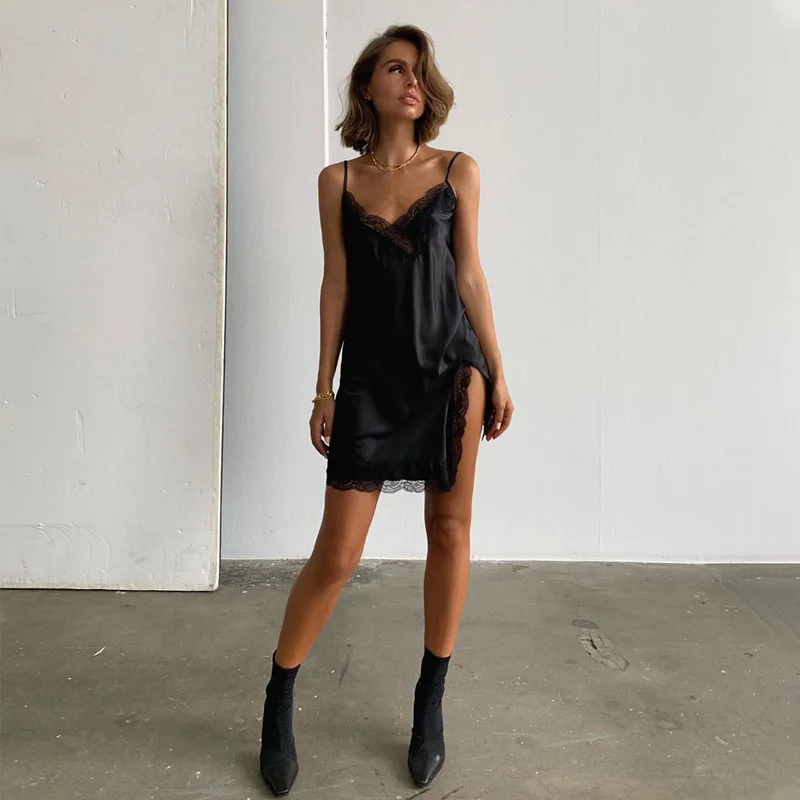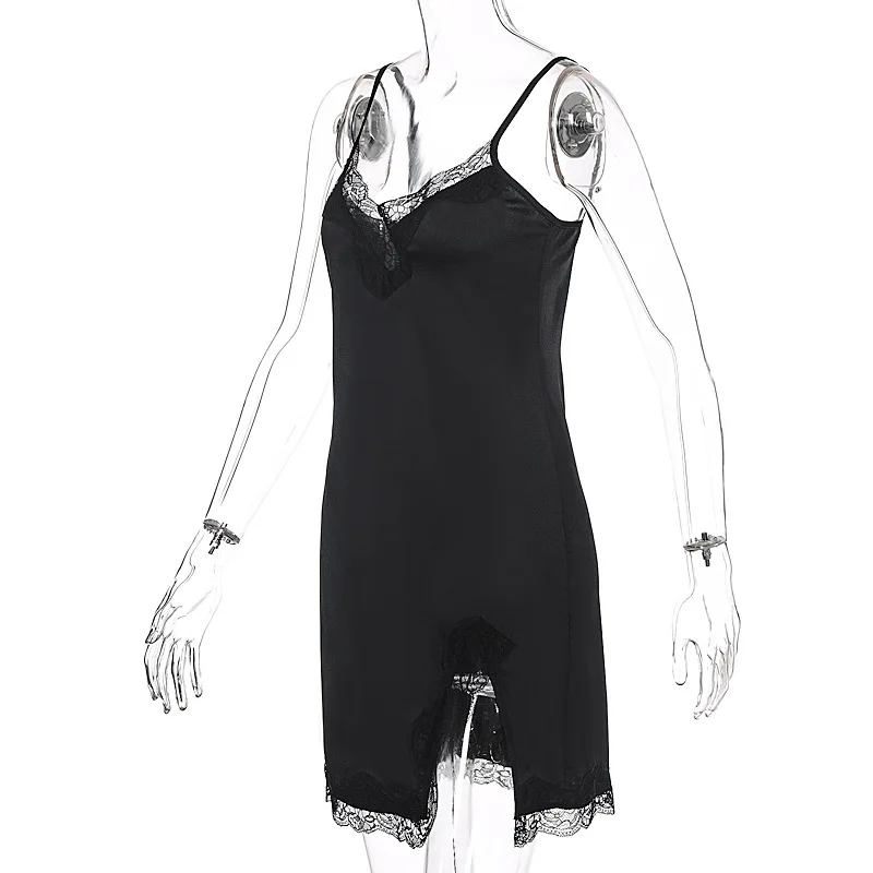 2021 sleeveless lace patchwork V-neck sexy slip mini slip dress summer women streetwear outfits sleep wear