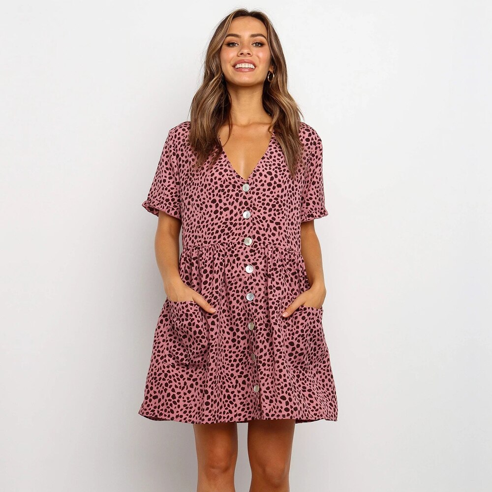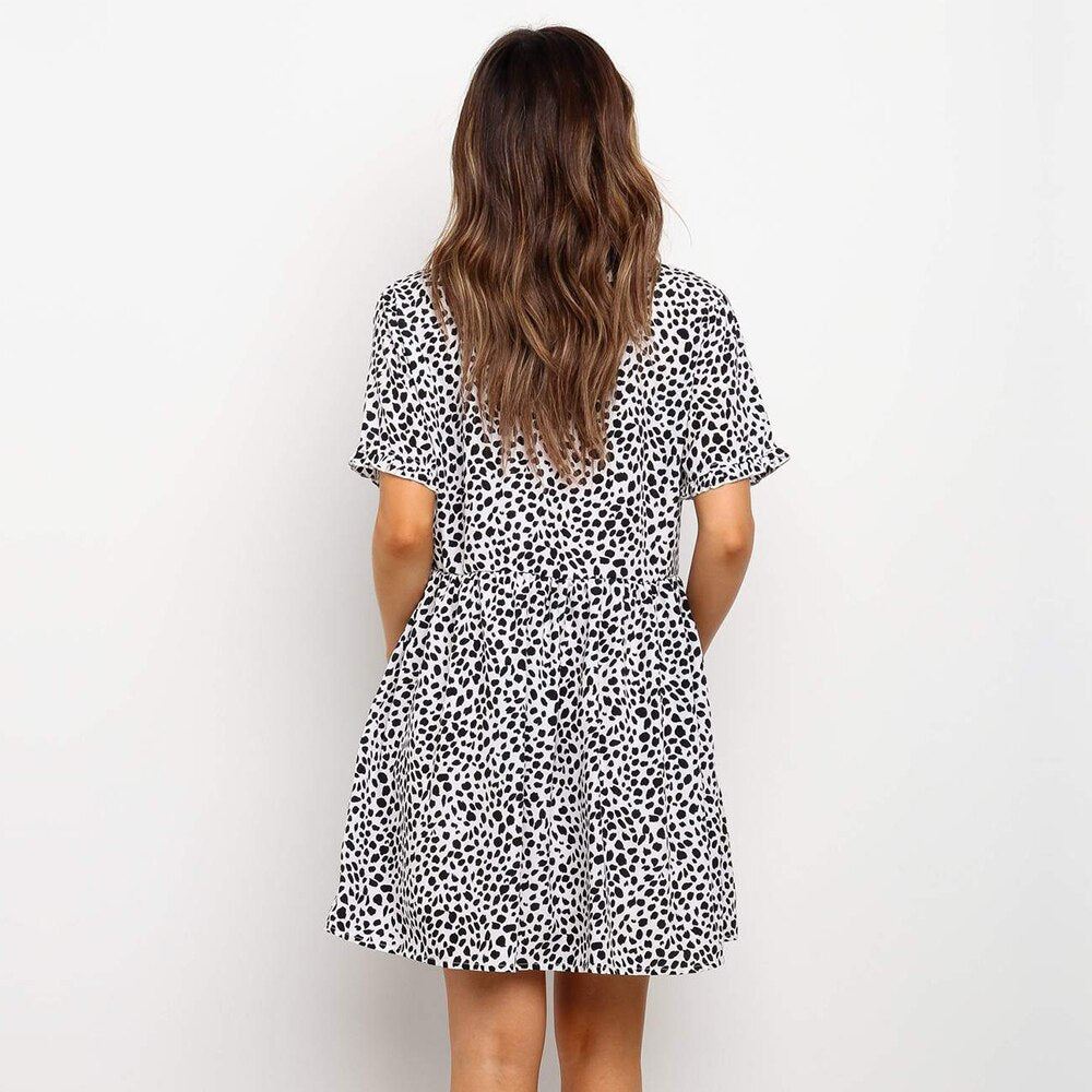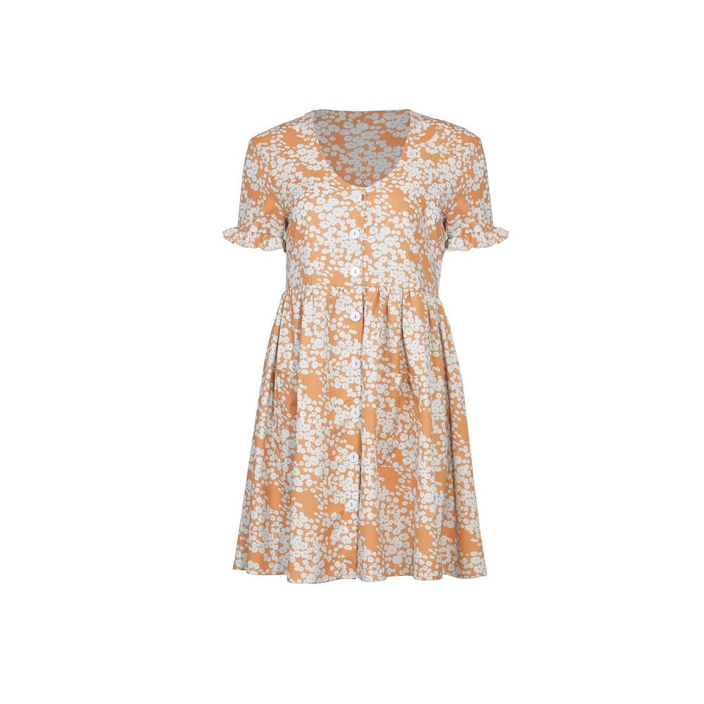 2021 Spring Summer New Floral Short Dress Women V Neck Single Breasted High Waist Print Ladies Slim Button Dot Dresses