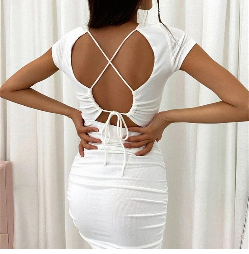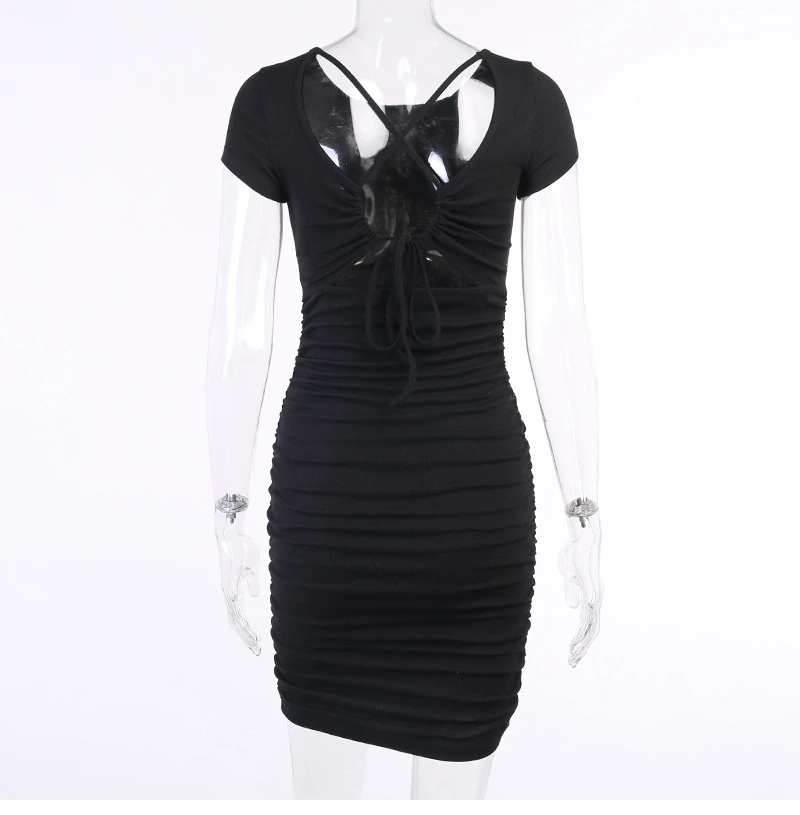 2021 Spring Summer New Sexy Bandage Short Dress Women Short Sleeve Bodycon Mini Hip Party Dress Two Ways To Wear