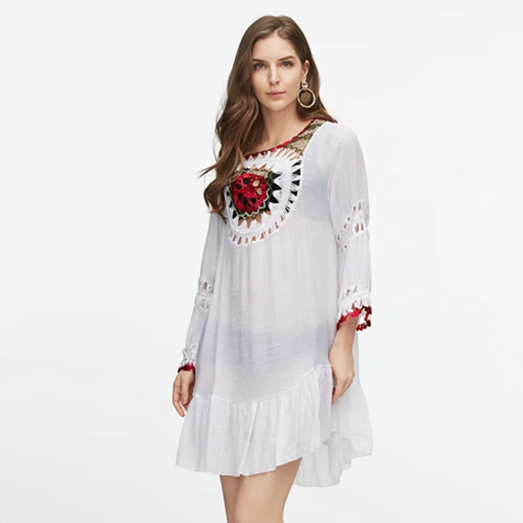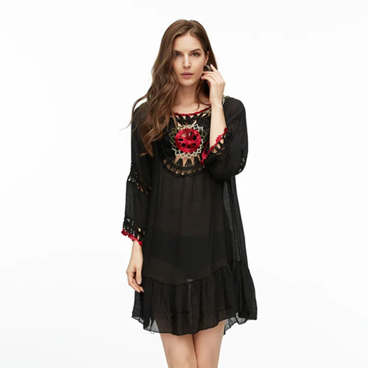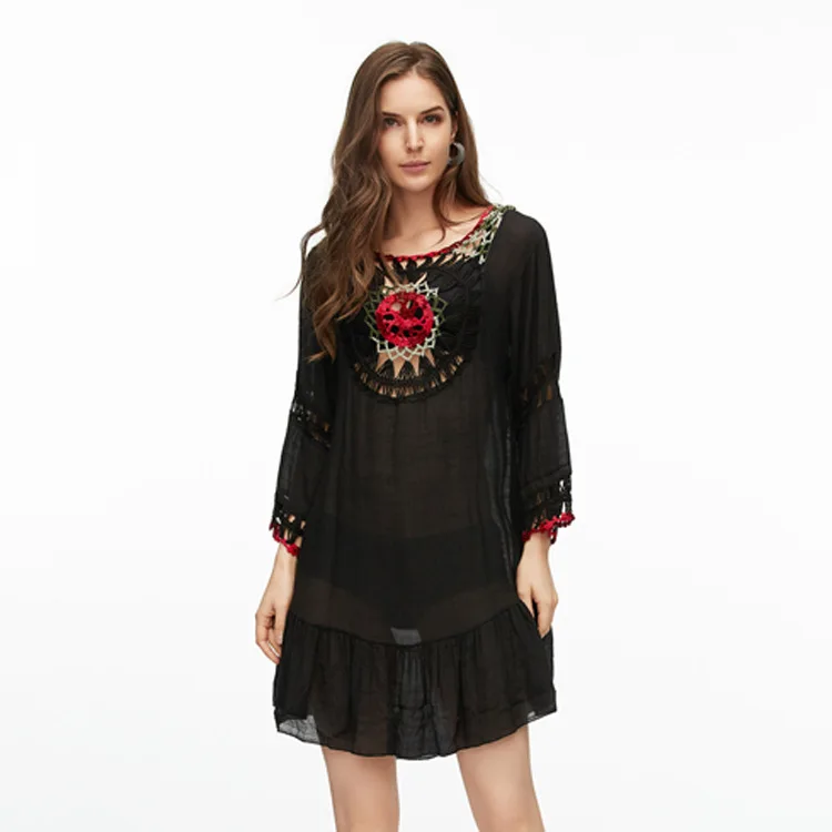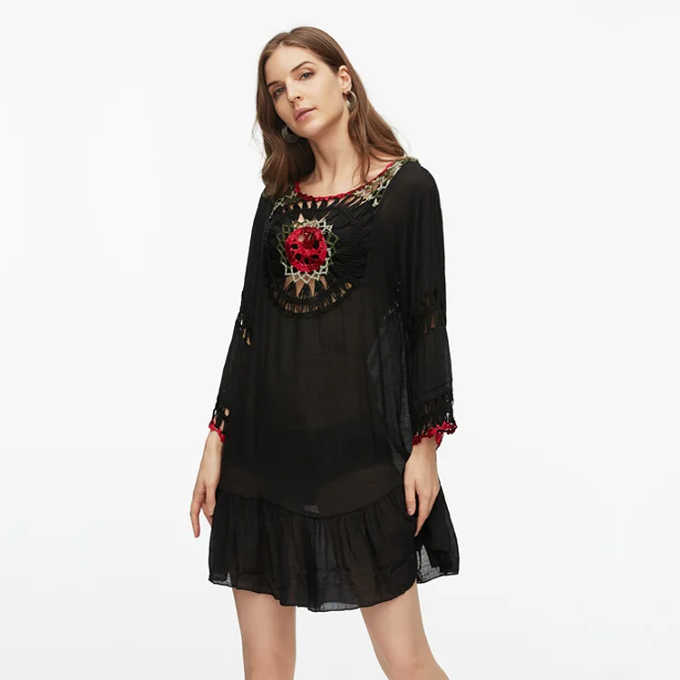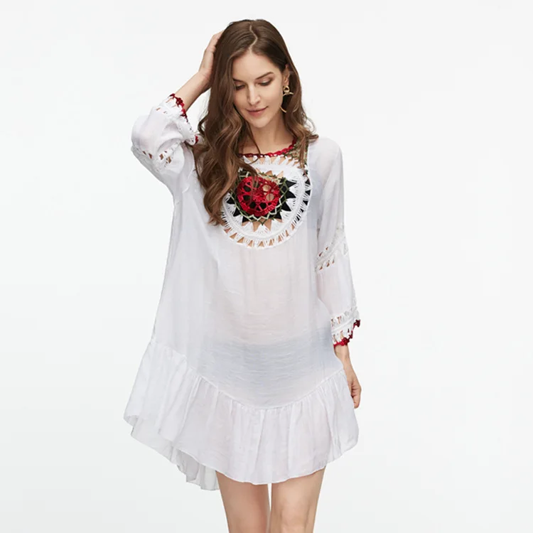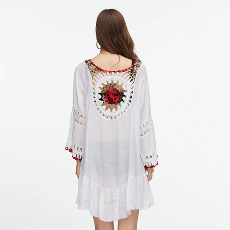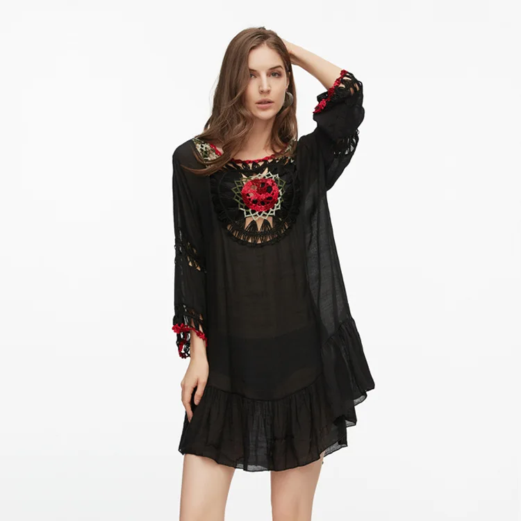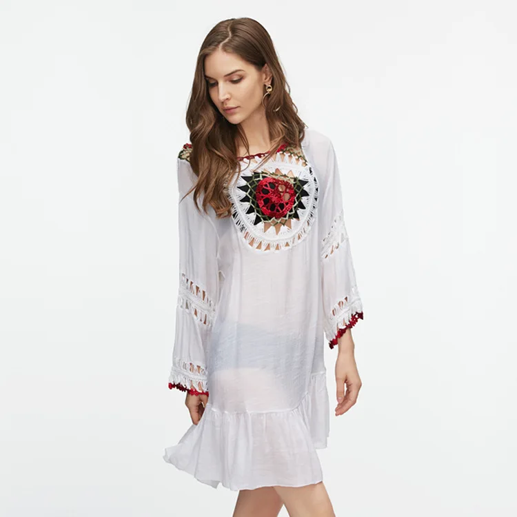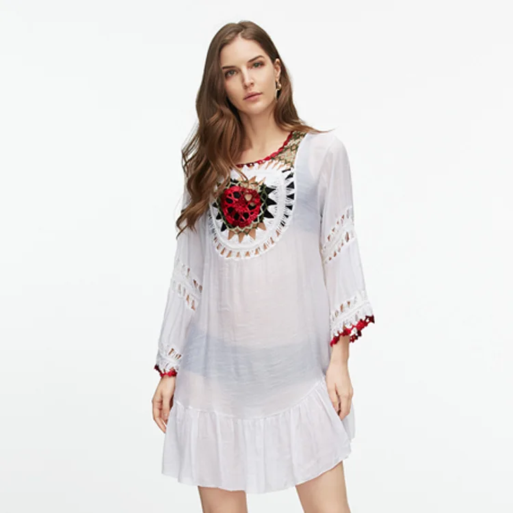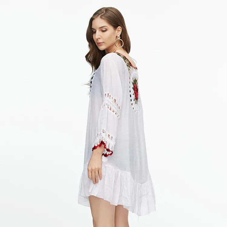 2021 Summer Clothes Women Bikini Cover Up Floral Lace Hollow Swimsuit Coverup Bathing Suit Beachwear For The Beach Dress Hot