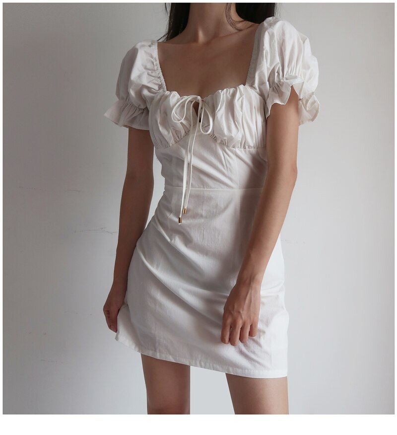 2021 Summer French Retro Boho Slash Neck Mini Sexy White Women Dress Elegant Puff Sleeve Y2k Casual Party Beach Light Dress Robe