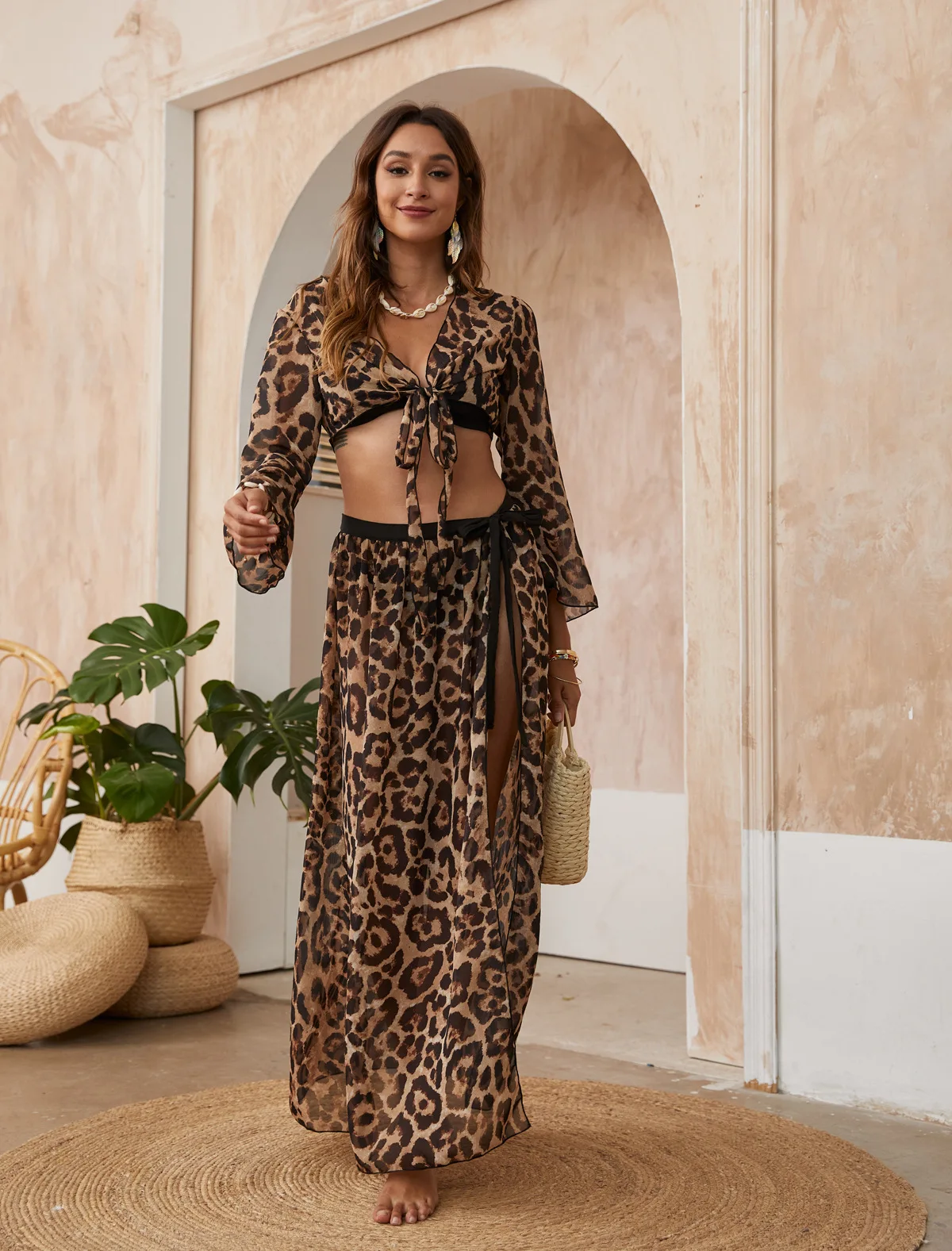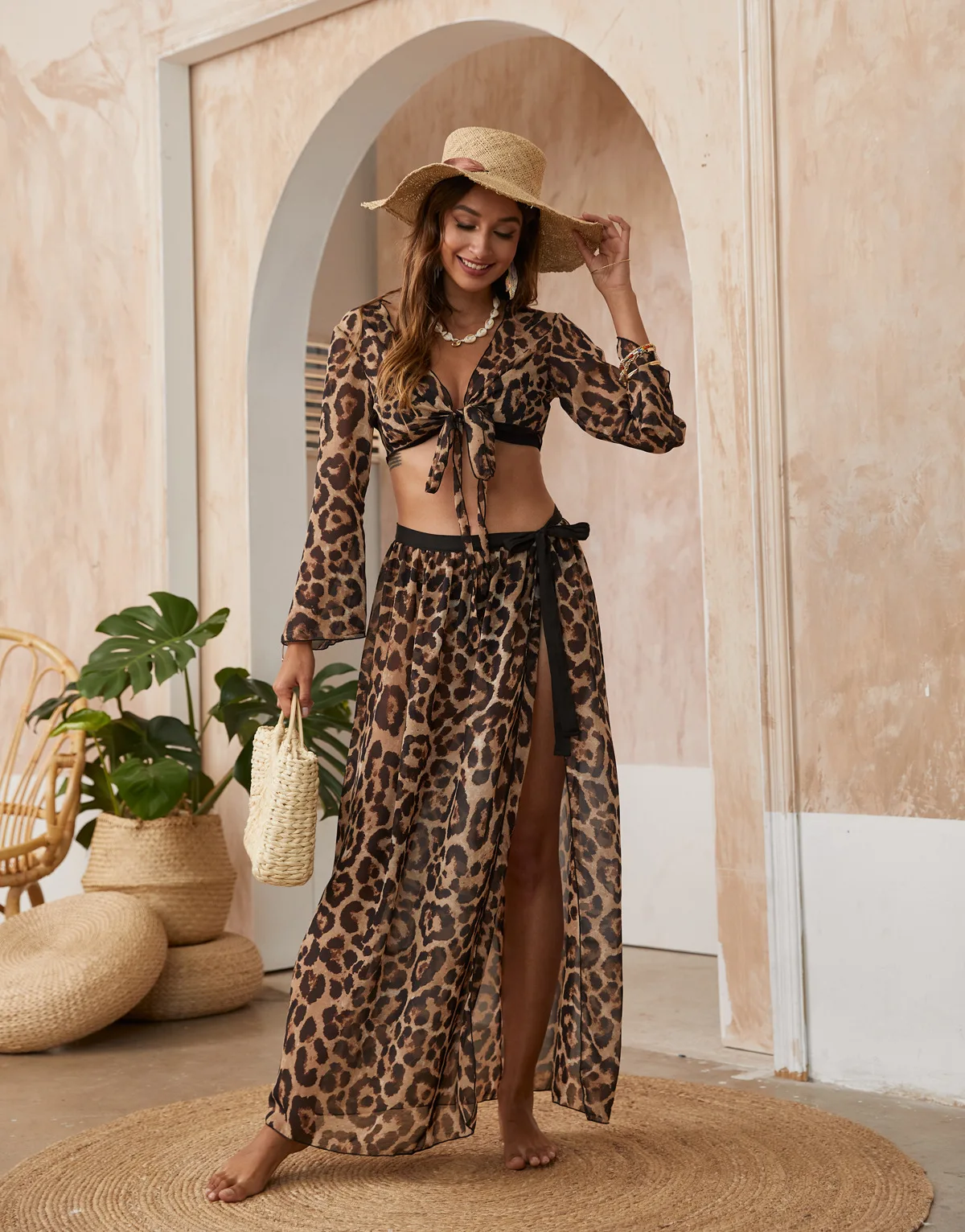 2021 Summer New Beach Vacation Leisure Suit Sexy Perspective Leopard Print Two-Piece Blouse