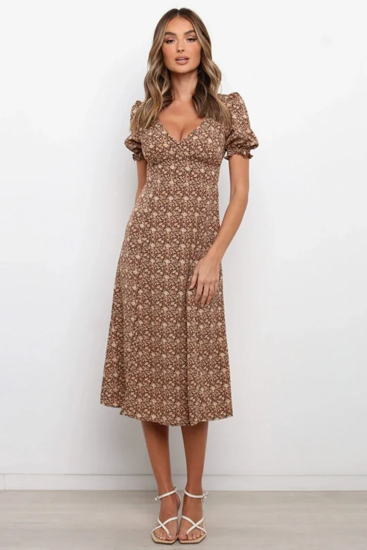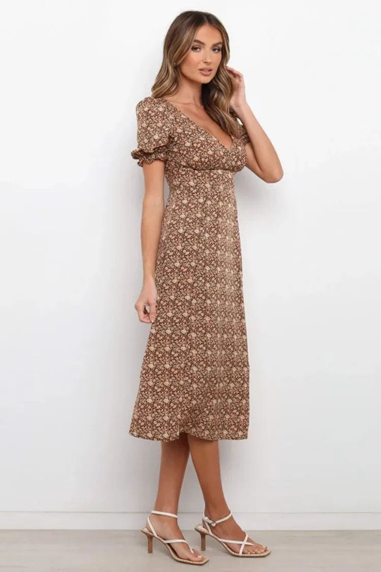 2021 summer new deep V women's classic casual short sleeve waist up holiday beach show thin temperament sexy Print Chiffon Dress