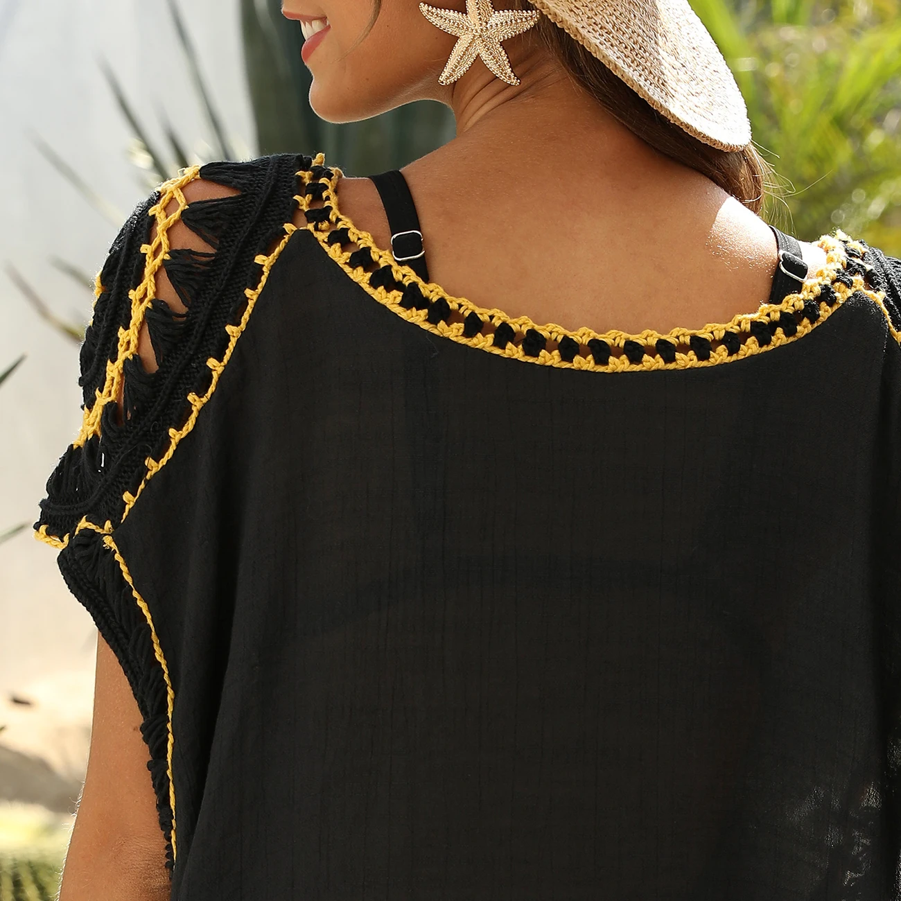 2021 Summer New Fashion Ladies Handmade Crochet Flower Stitching Irregular Beach Bikini Loose Top