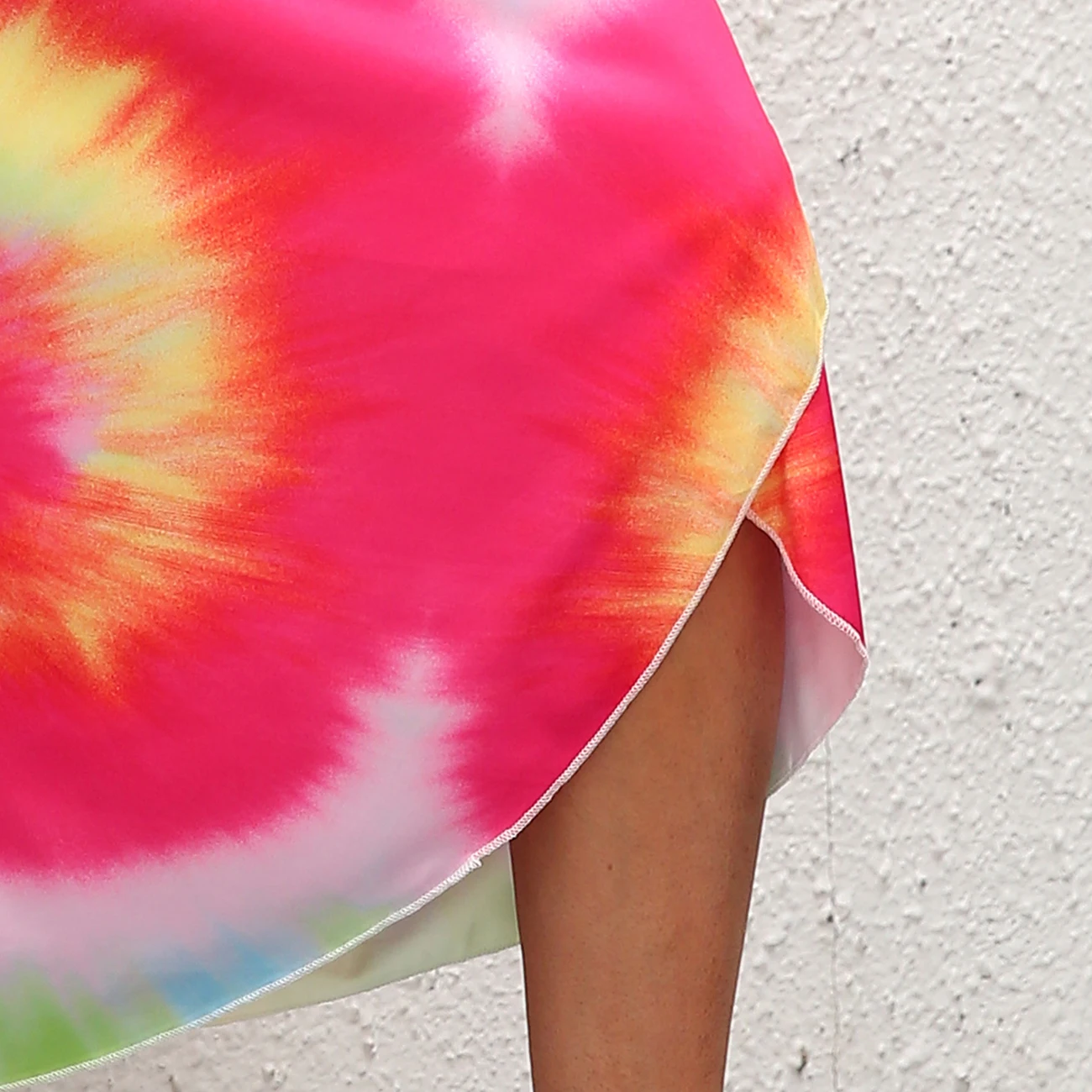 2021 Summer New Fashion Tie-Dye Color Matching Printed Lace-Up Skirt One-Piece