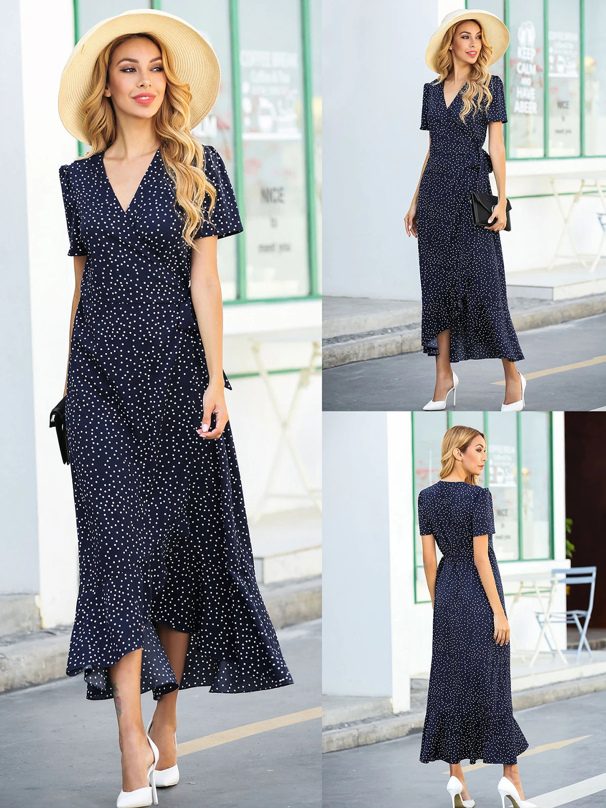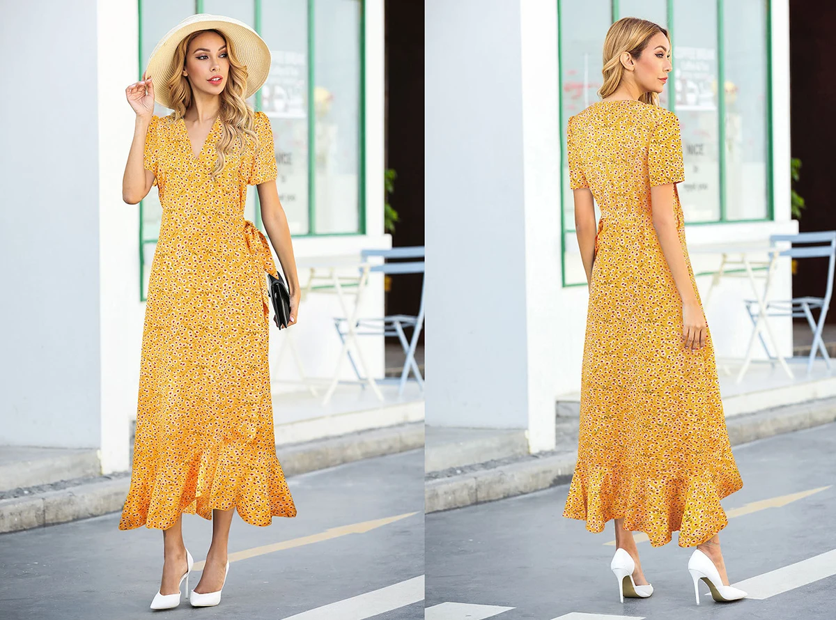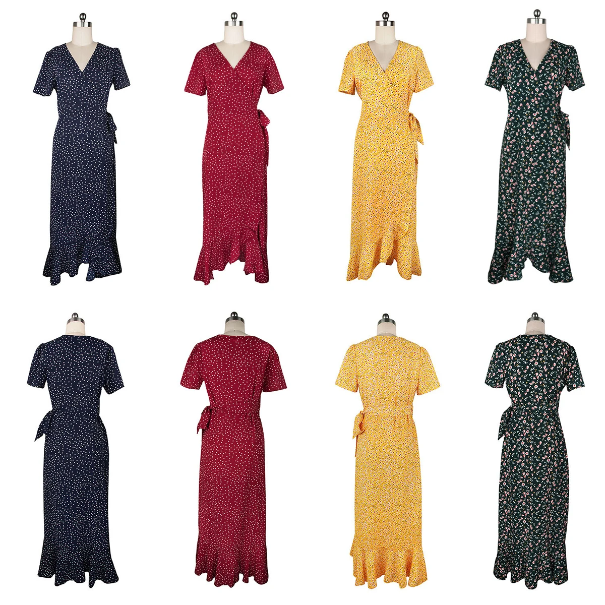 2021 Summer New Fashion Women's Explosive Style V-Neck Irregular Lotus Leaf Dress Fishtail Floral Dress