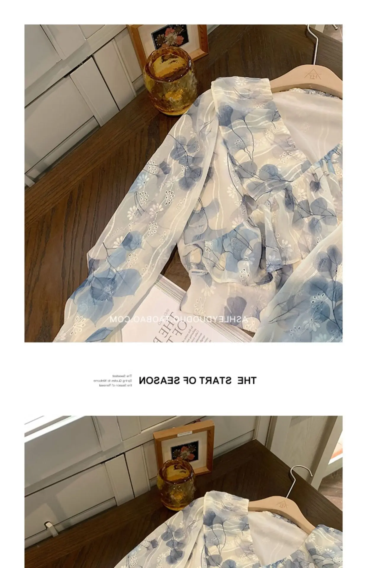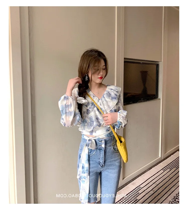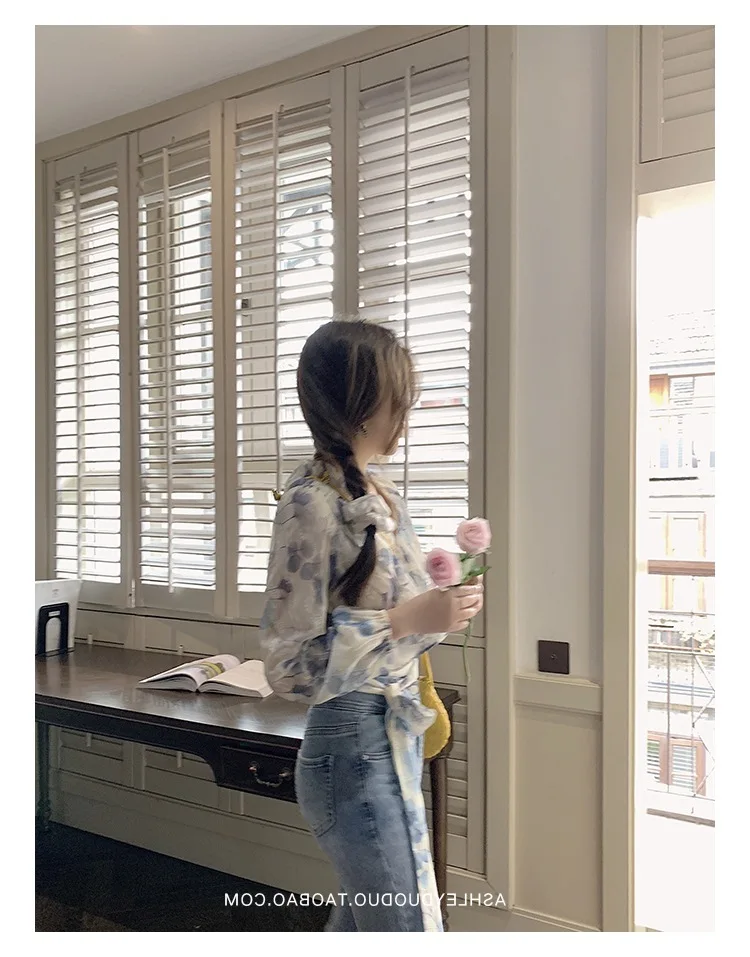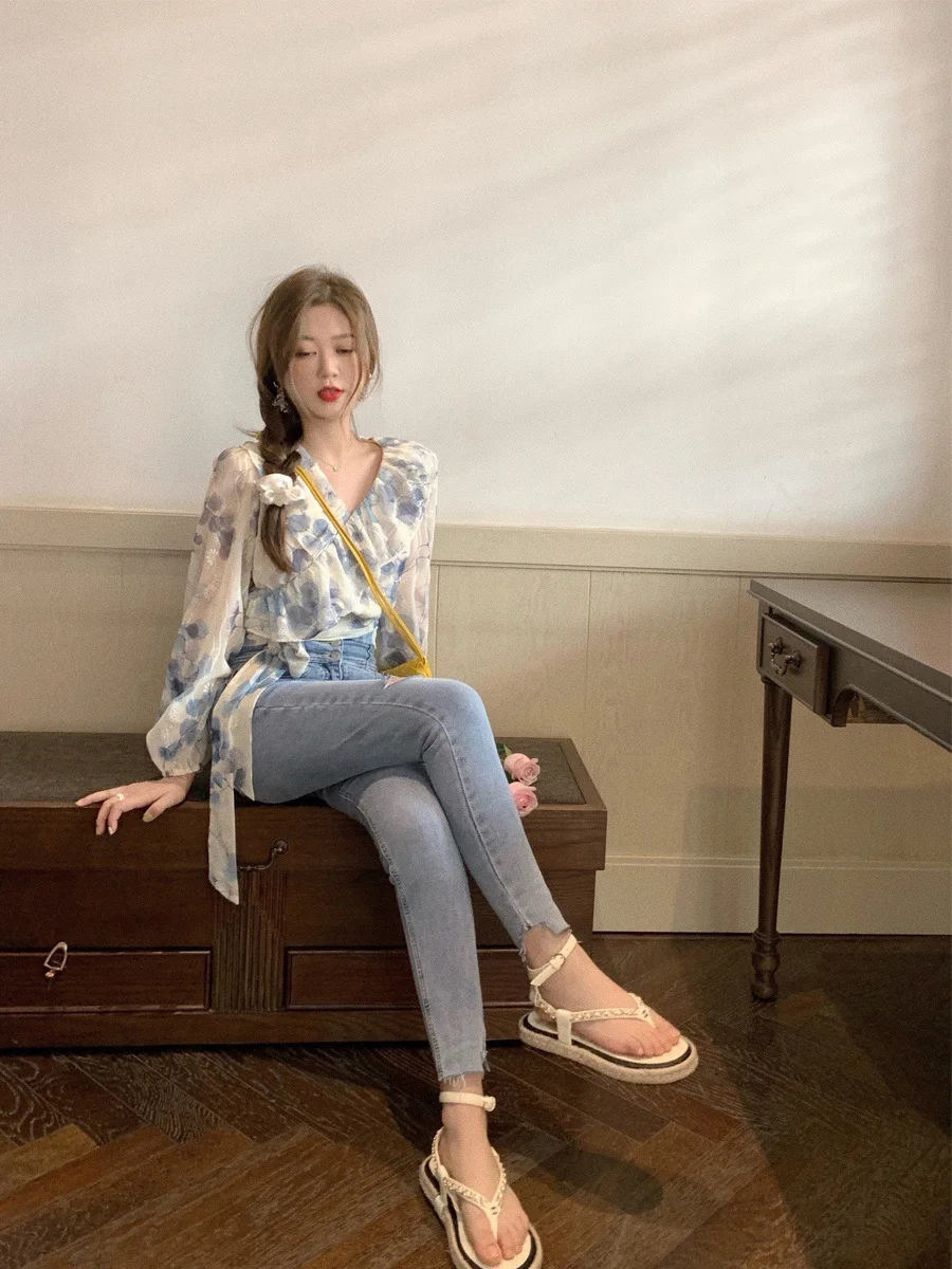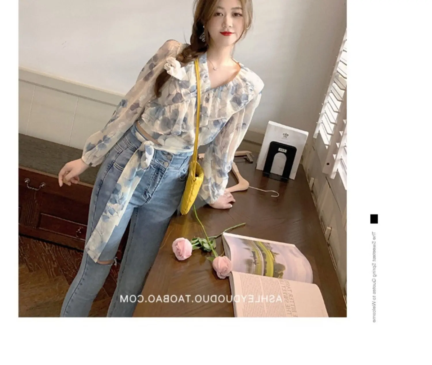 2021 Summer new spring V-neck top temperament chiffon shirt sweet floral shirt women's design