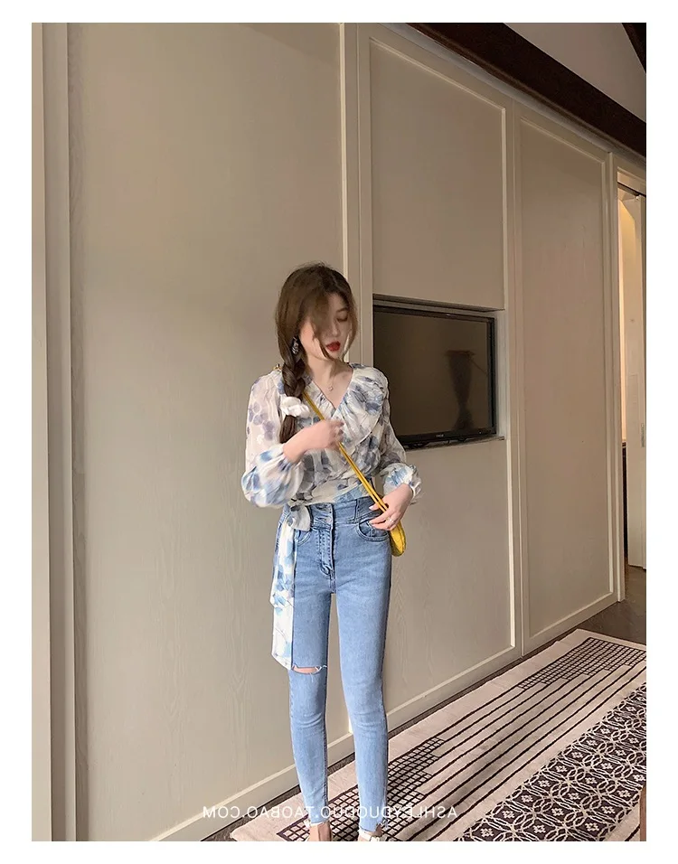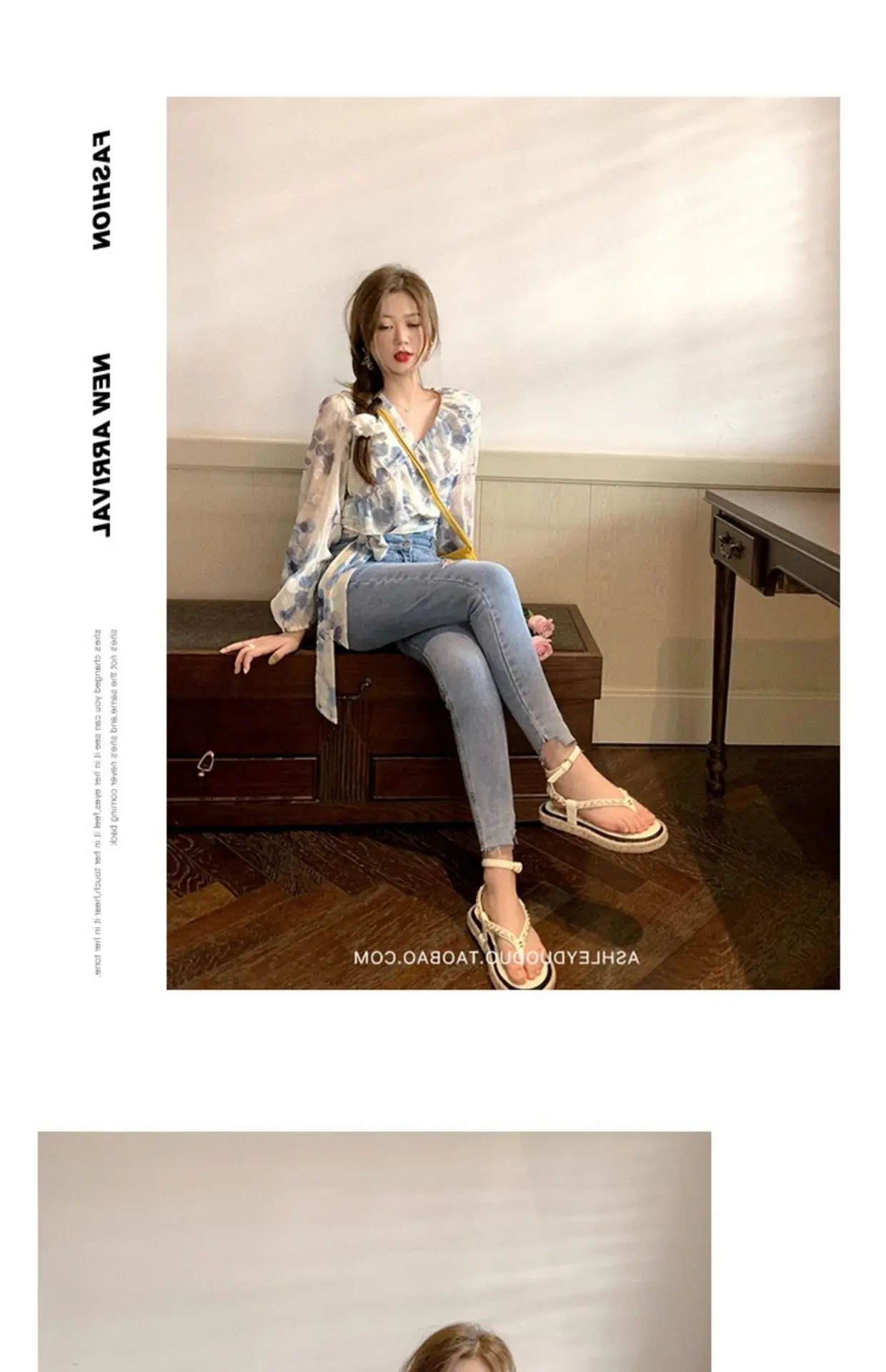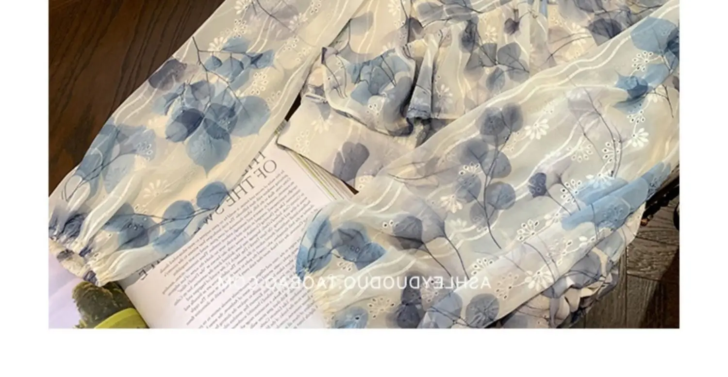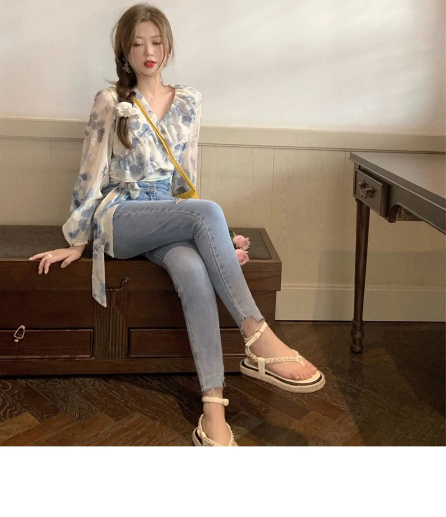 2021 Summer new spring V-neck top temperament chiffon shirt sweet floral shirt women's design