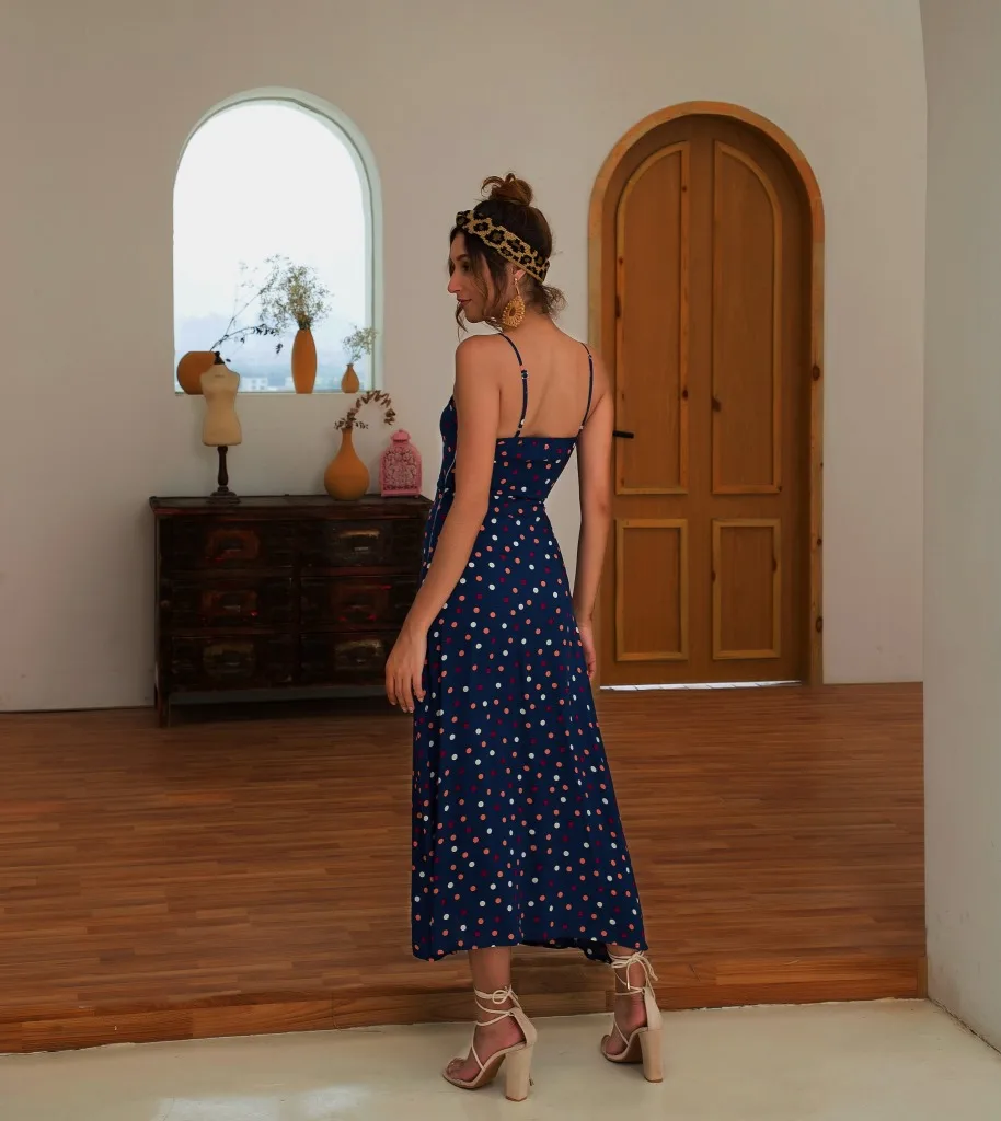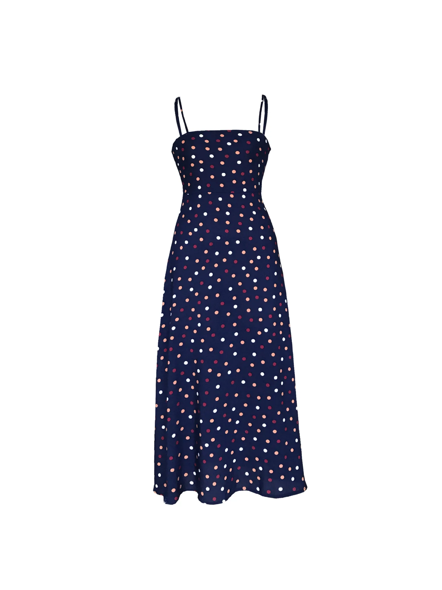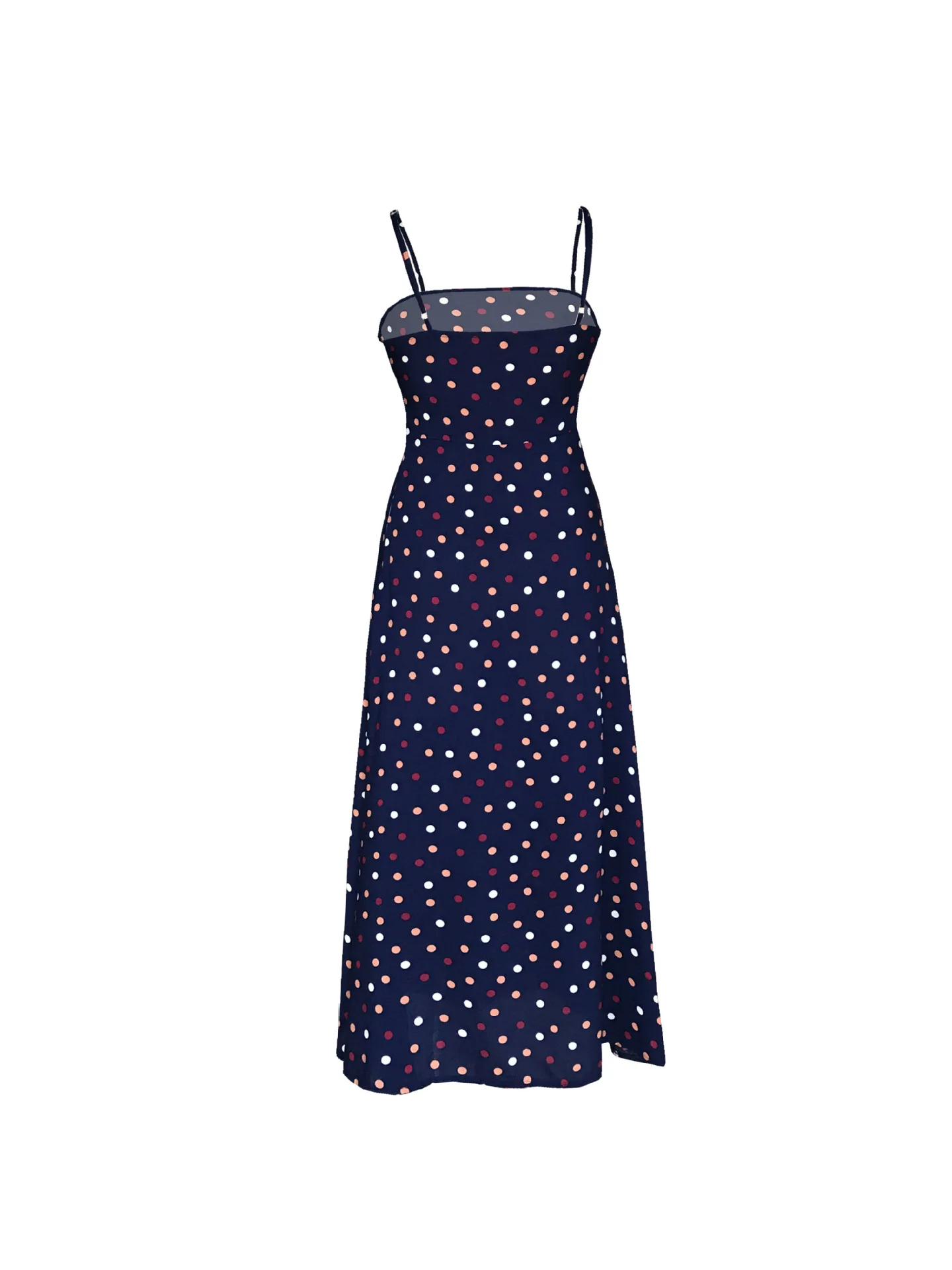 2021 Summer New Women's Fashion Casual Print Slash Neck Spaghetti Straps Sleeveless Backless Loose Waist Ankle Lenght Dress Lady