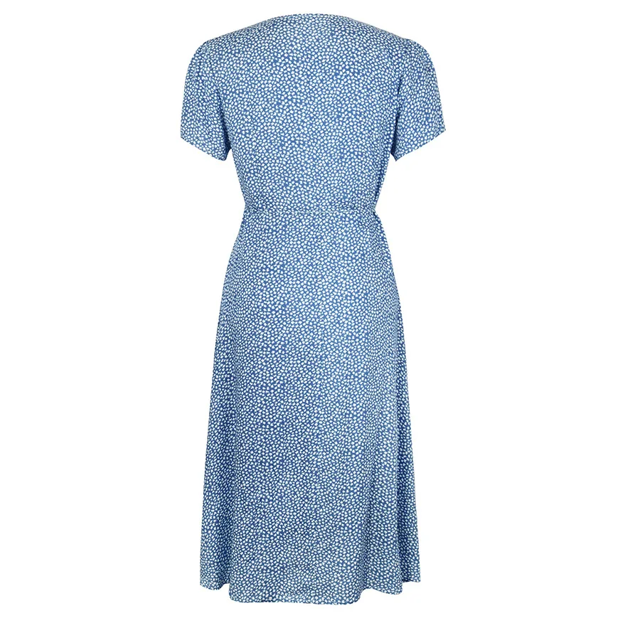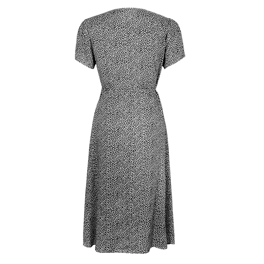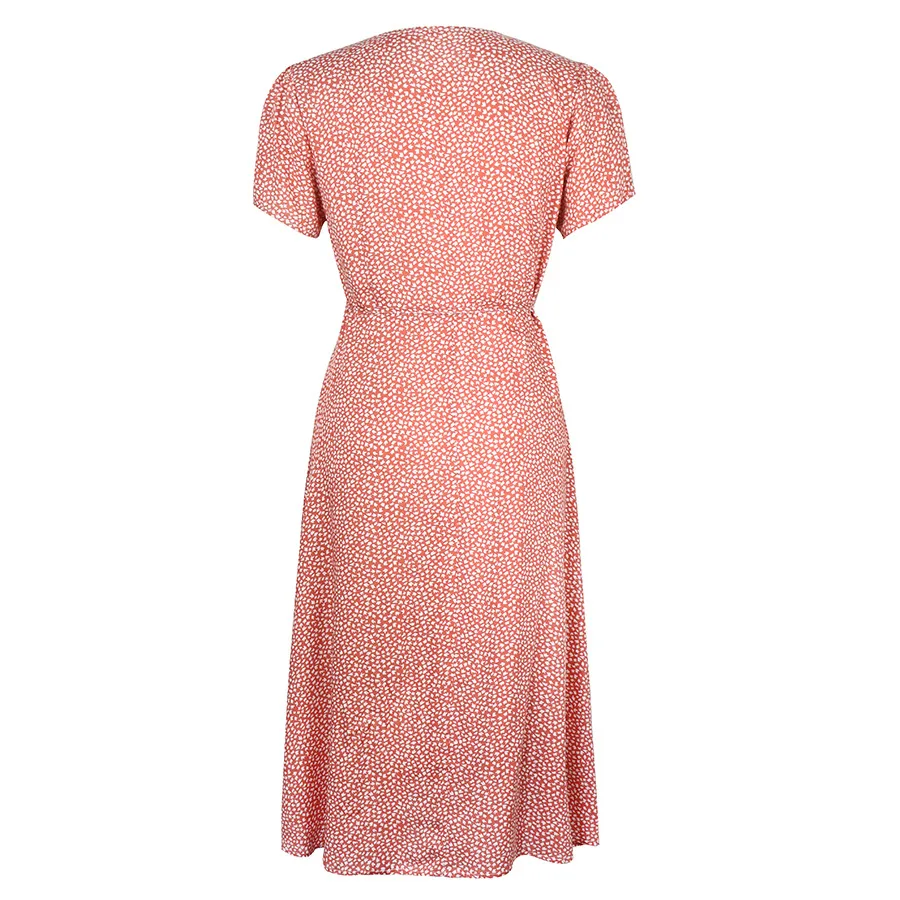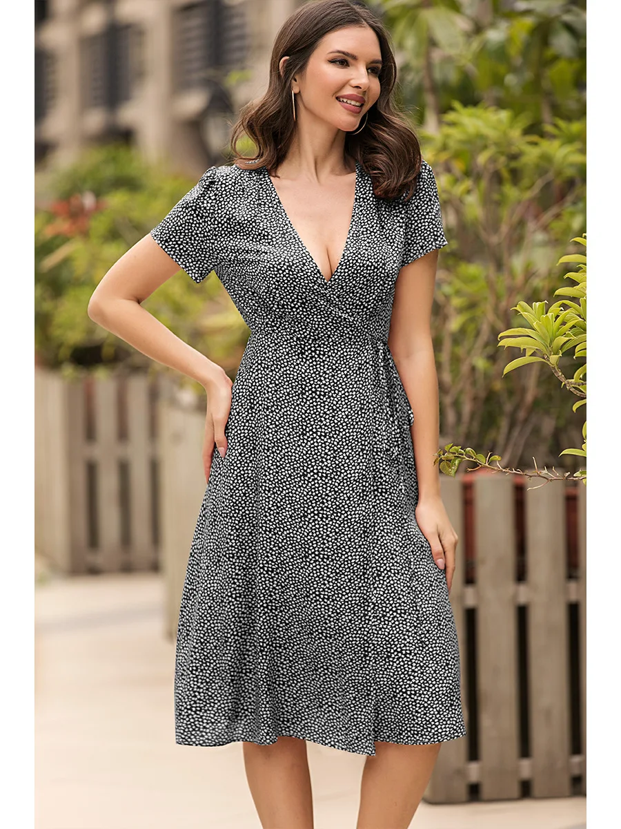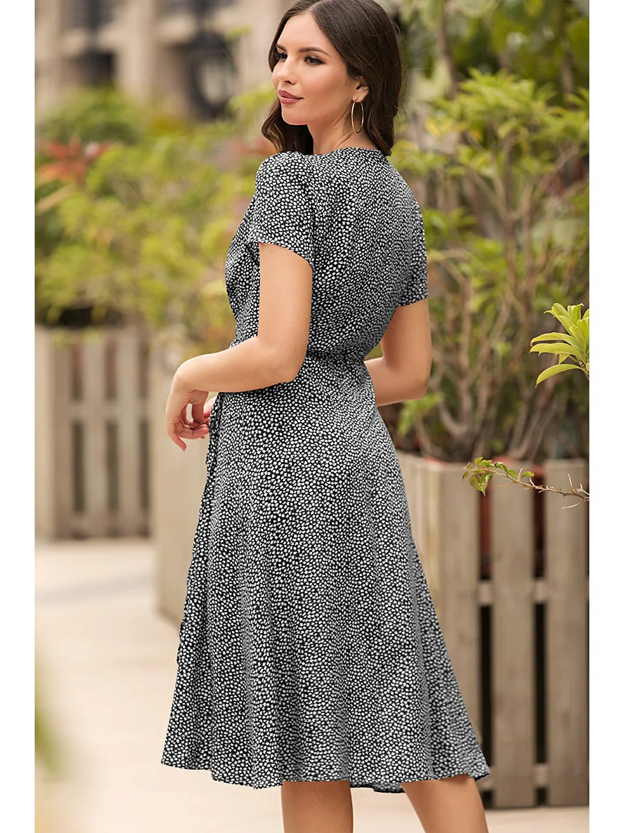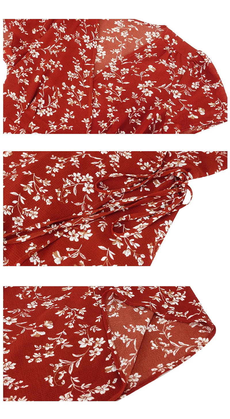 2021 Summer New Women's Fashion Sexy Floral Print Deep V Neck Short Sleeve Lace Up Tunic Split Knee Lenght Dress Lady Slim Basic