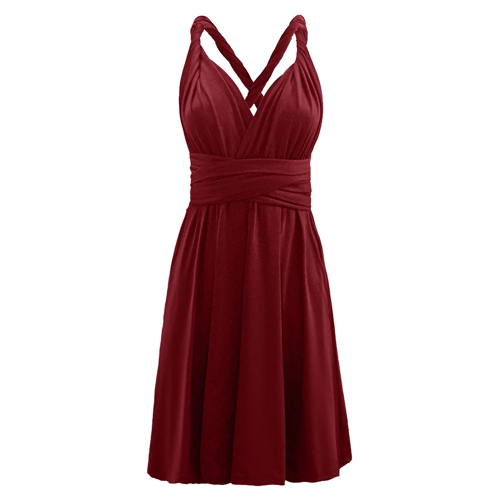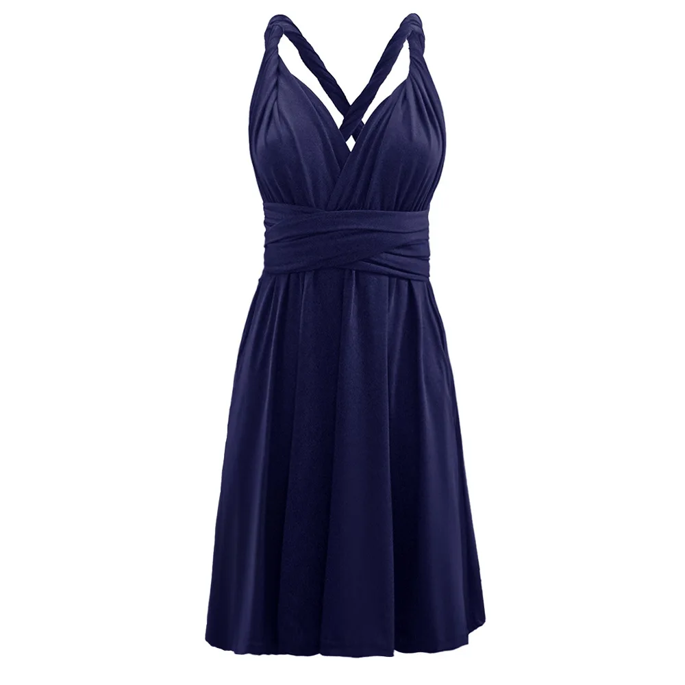 2021 Summer New Women's Fashion Sexy Solid V Neck Spaghetti Straps Sleeveless Backless Bandage Tunic Pockets Mini Dress Ladies