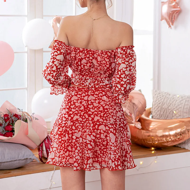 2021 Summer New Women's Floral One-Shoulder Tube Top High Waist Skirt Ruffled Suit