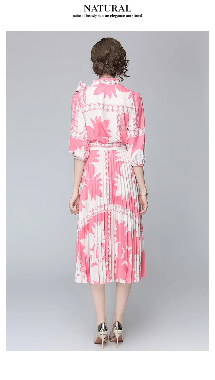 2021 Summer Runway Suit Set Women Elegant Short Sleeve Knit Top and Floral Skirt Lady Sweet Casual Party Outfits