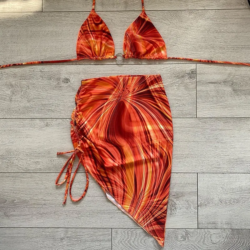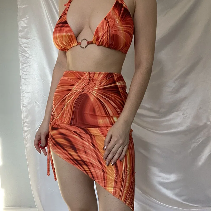 2021 Summer Vacation Women Sets 2 Pieces Bandage Halter Vest + Mini Skirt Print Suits Fashion New Female Sexy Tracksuits Costume