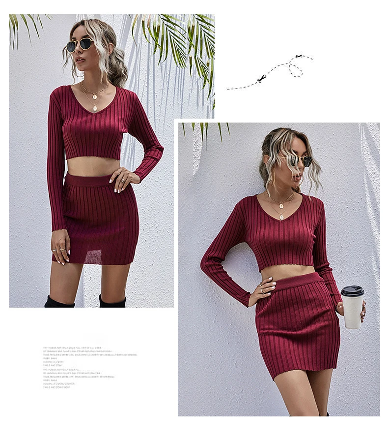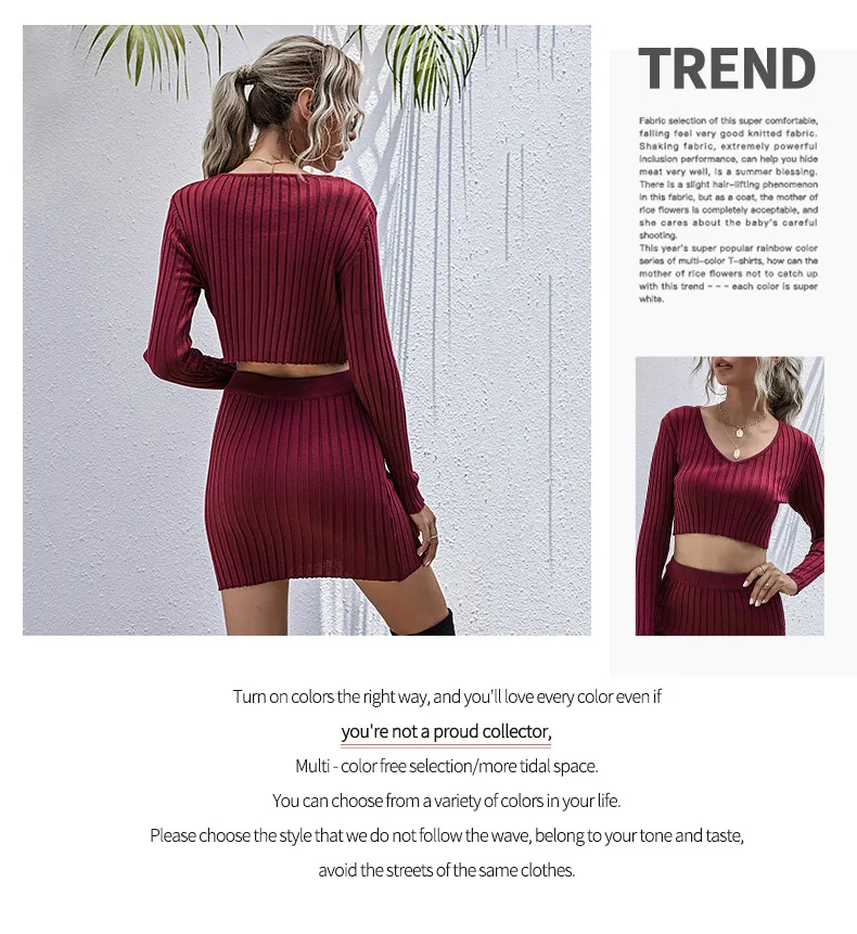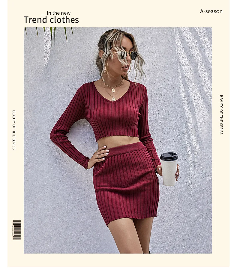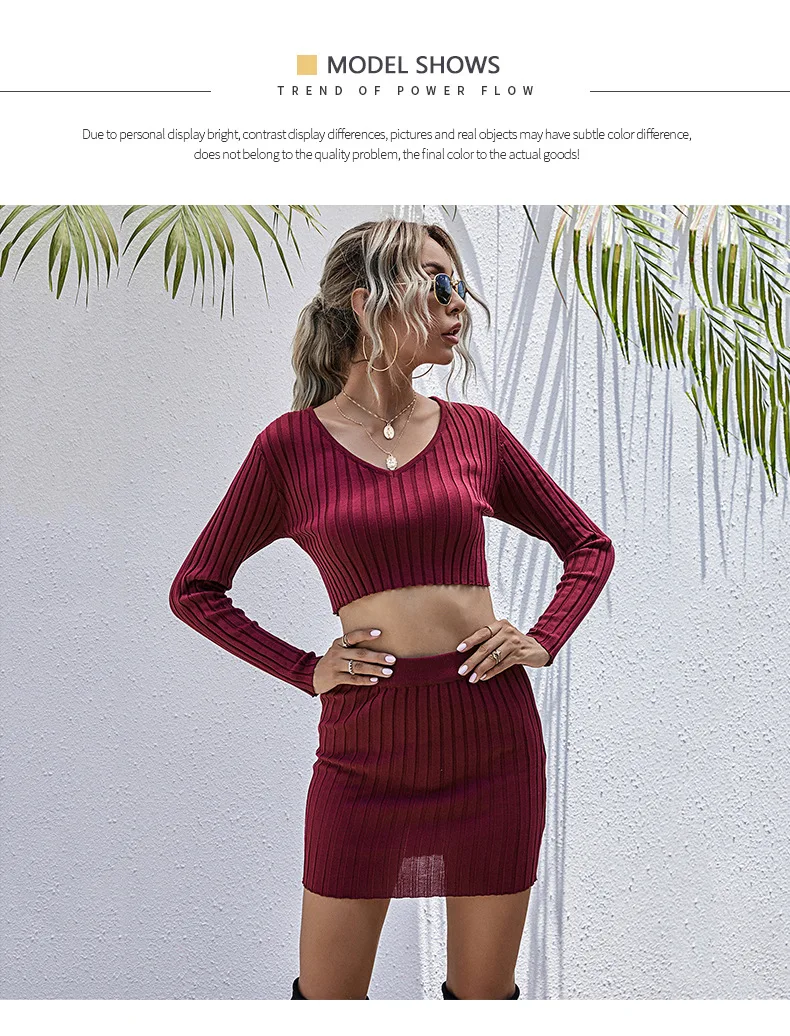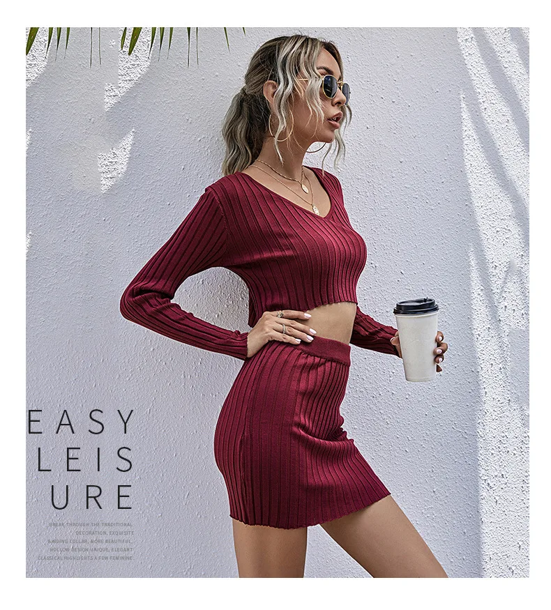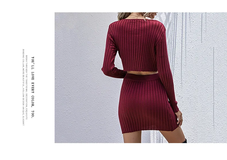 2021 Summer Waistless Solid Color Short Knit Sweater, Long-Sleeved Hedging, Two-Piece Buttocks, Slim And Thin Temperament