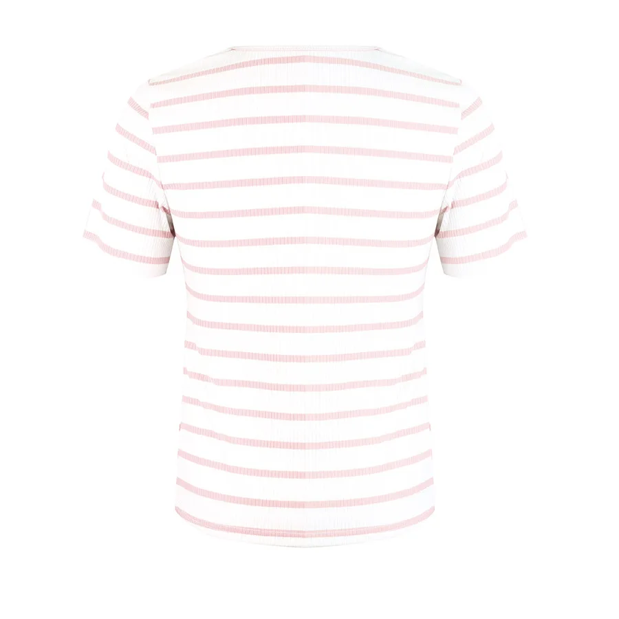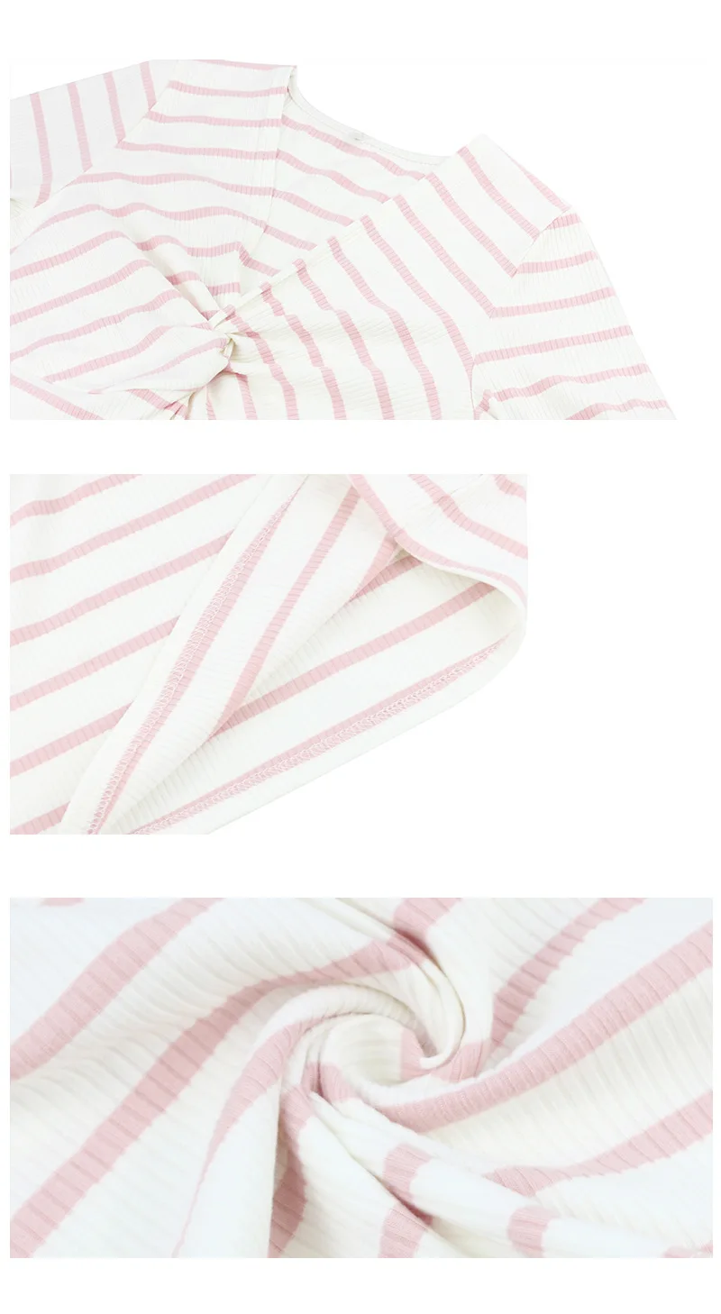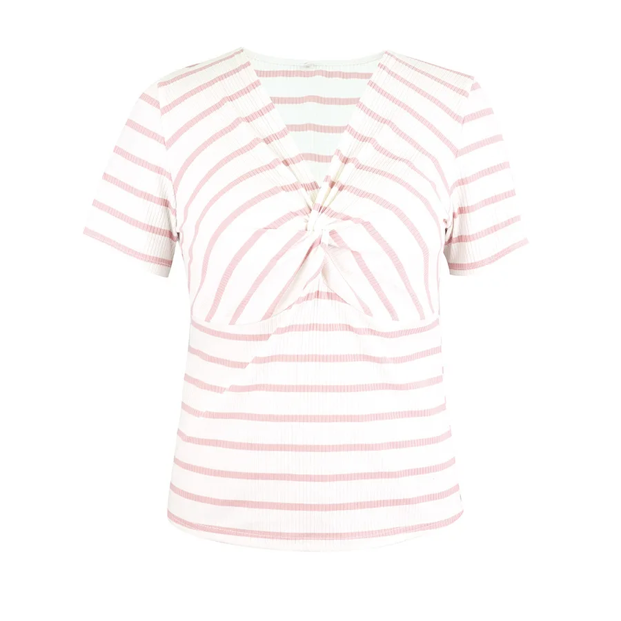 2021 Summer Women's Knitted Pink Striped V-Neck T-Shirt Top Casual Commuter