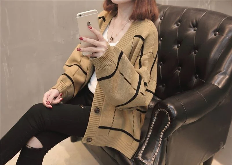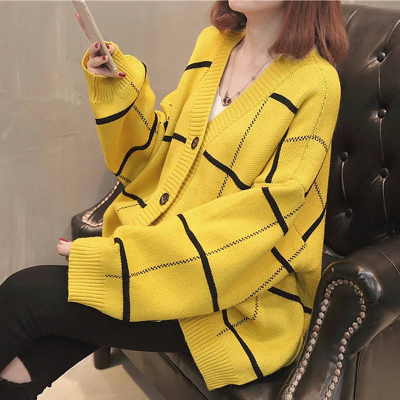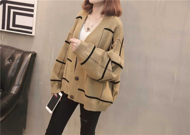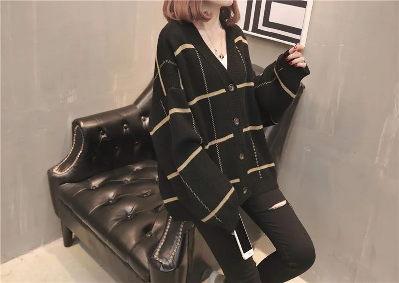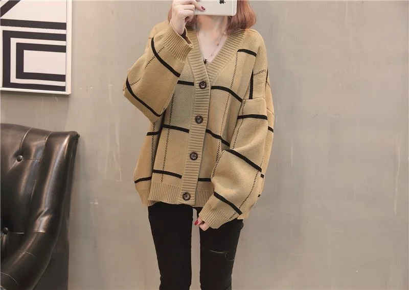 2021 Sweater Women's Cardigan Coat Autumn New Plaid