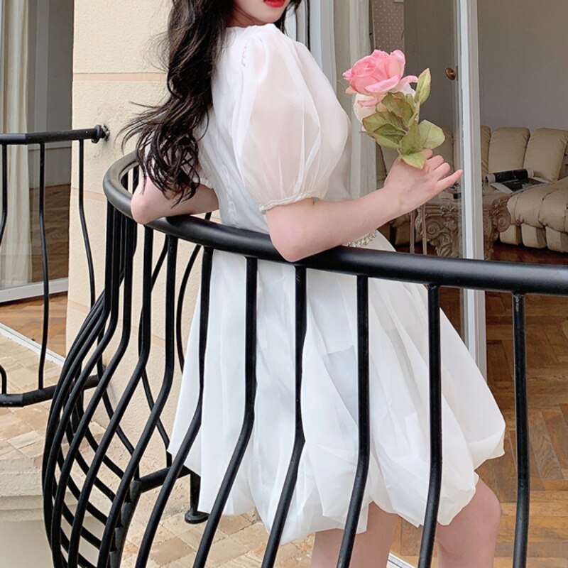 2021 Women French Mesh Temperament Fashion Designer Bright Diamond Dress Elegant Korean Chic Mini Party Vestidos Mujer New Robe