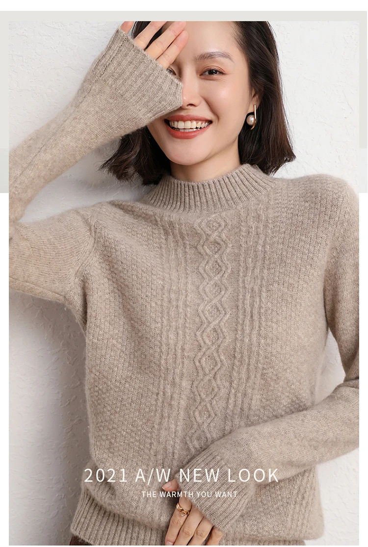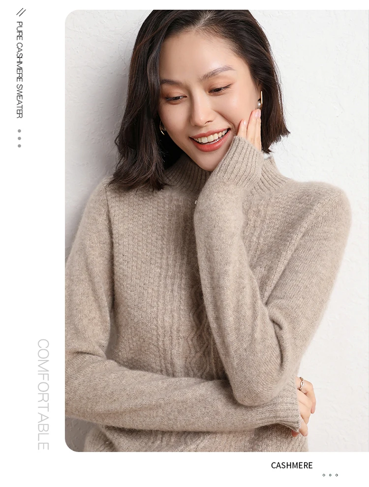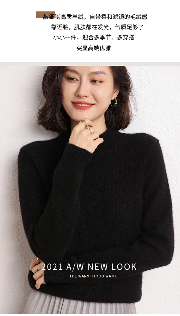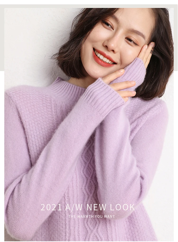 2021Hot Sale Autumn Winter 100% Pure Cashmere Sweater Turtleneck Women's High Quality Soft Female Loose Thickened Knitted Jumper